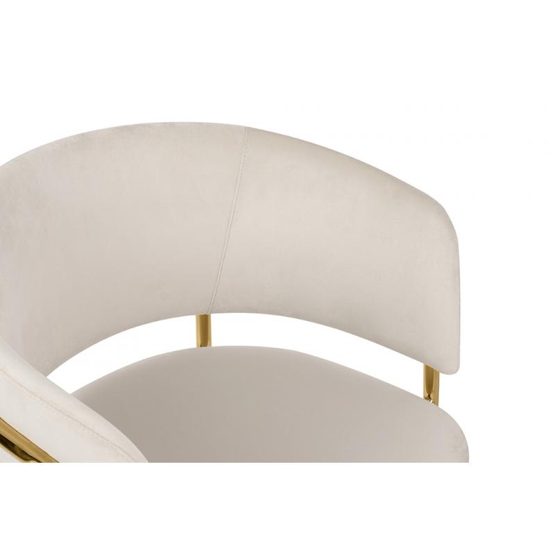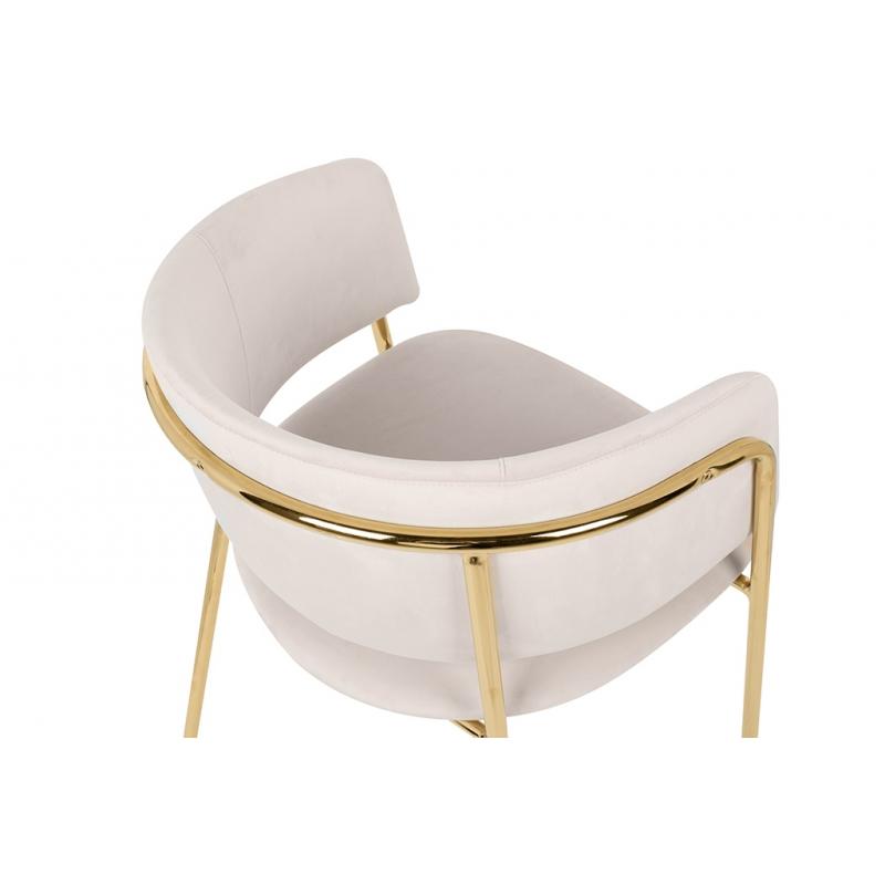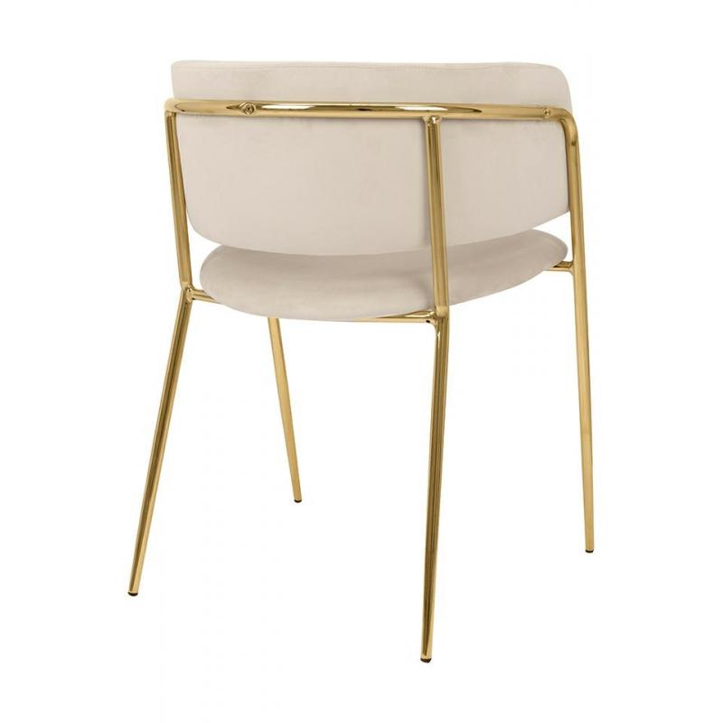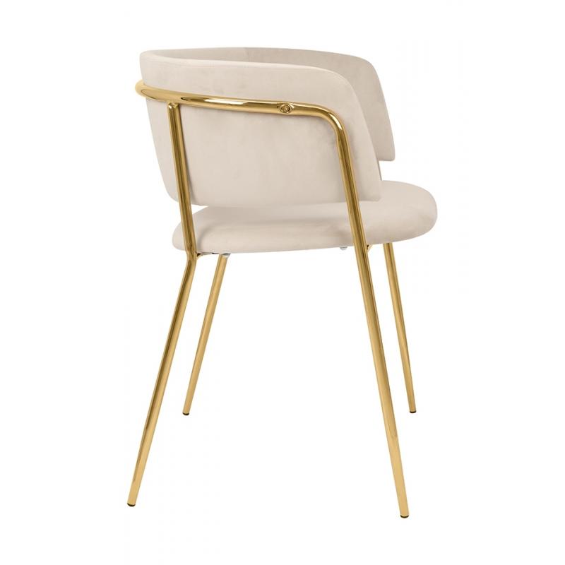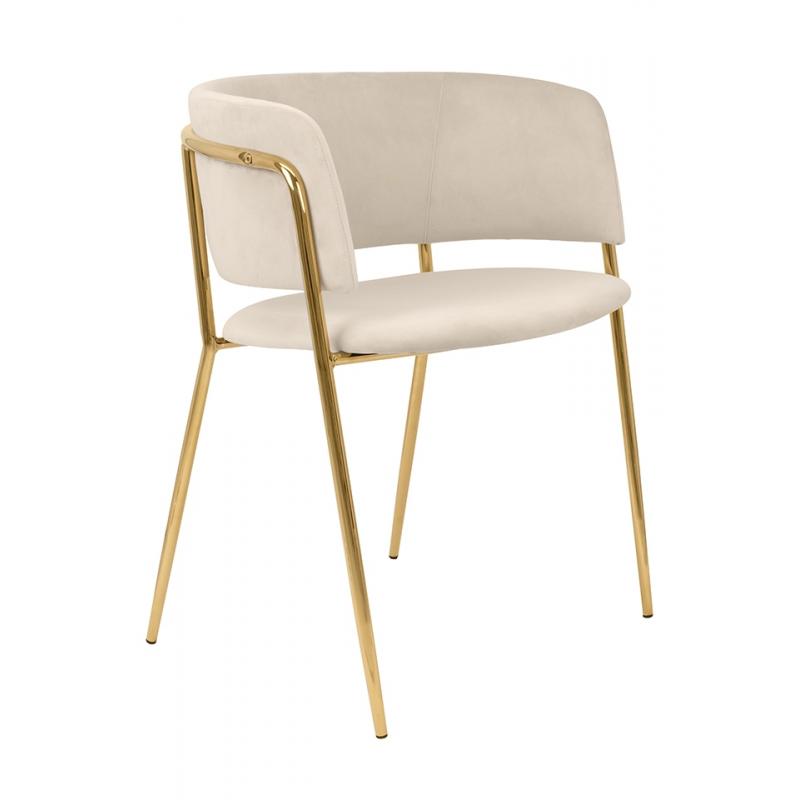 Krzesło DELTA beżowe. Siedzisko i oparcie tapicerowane są miękkim i przyjemnym w dotyku welurem. Mocna, stabilna konstrukcja została wykonana z metalu w złotym, błyszczącym kolorze. Gładkie oparcie w połączeniu z nowoczesną kolorystyką sprawiają, że Delta świetnie odnajdzie się we wnętrzach klasycznych, jak również w stylu glamour.Siedzisko: szer. 46 cm / gł. 48 cm Oparcie: wys. 30 cm / szer. 42 cm Rozstaw nóg: szer. 54 cm / gł. 47 cm Waga netto: 6,5 kg Wymiar opakowania: 61 cm / 77 cm / 60 cm.