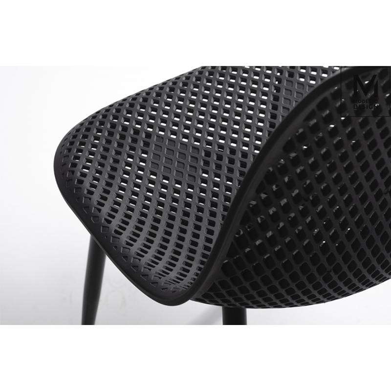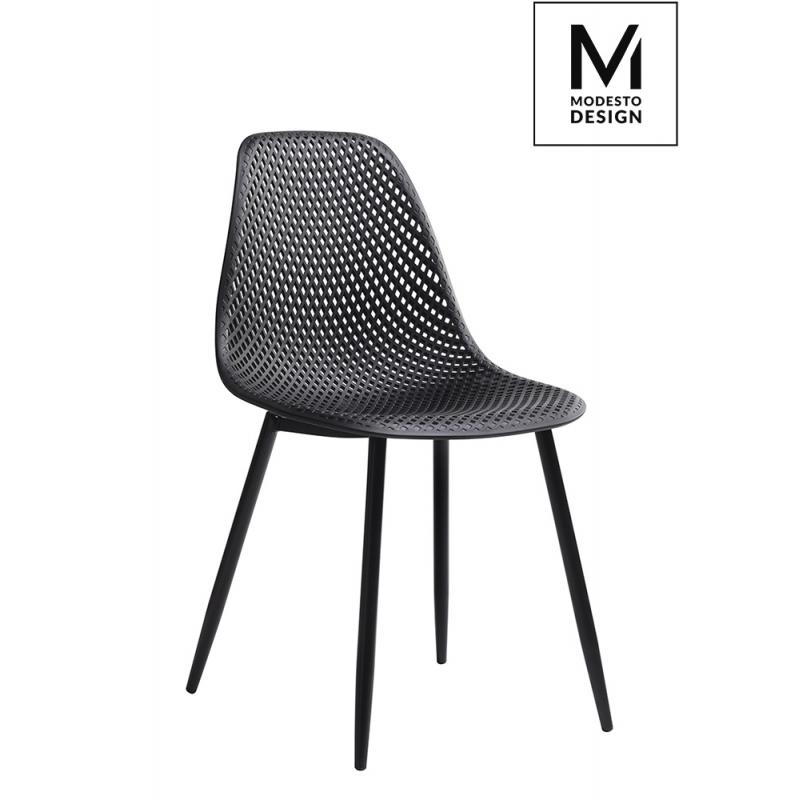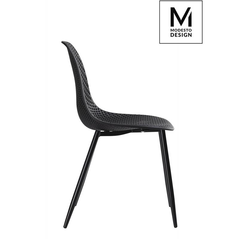 Krzesło TIVO marki MODESTO DESIGN. Siedzisko i oparcie wykonane z perforowanego tworzywa sztucznego. Nogi zrobione są ze stali lakierowanej proszkowo na kolor czarny. Tivo sprawdzi się w nowoczesnych oraz industrialnych wnętrzach.Waga netto 1 szt.: 3.50 kg Waga opakowania: 4 kg Sposób wysyłki: Paczka Wymiary opakowania: 56 cm x 47 cm x 61 cm Produkt do samodzielnego montażu: Tak