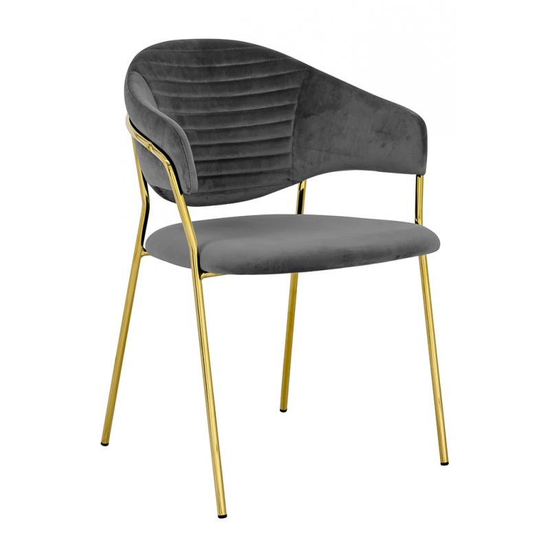 Krzesło NAOMI ciemny szary - welur, podstawa złota