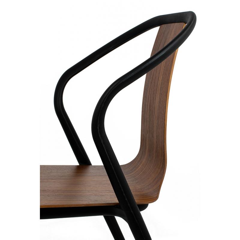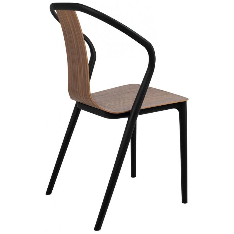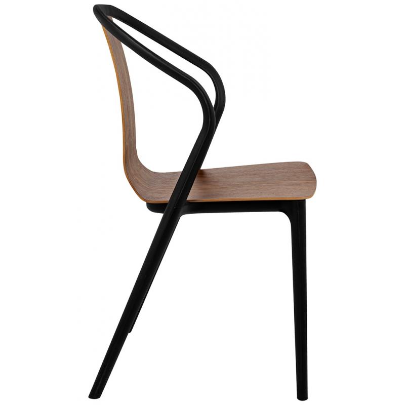 Krzesło VINCENT WOOD. Siedzisko i oparcie zostało wykonane ze sklejki drewnianej w kolorze orzechowym. Konstrukcja wykonana została z czarnego polipropylenu z matowym wykończeniem. Vincent to propozycja dla osób ceniących proste i funkcjonalne przedmioty. Doskonale odnajdzie się w nowoczesnych, industrialnych i skandynawskich wnętrzach.Szerokość siedziska 43 cm Głębokość siedziska 41 cm Wysokość oparcia 44 cm Szerokość oparcia 50 cm Szerokość oparcia sklejka: 21 cm Rozstaw nóg (szerokość przód) 43 cm Rozstaw nóg (szerokość tył) 48,5 cm Rozstaw nóg (głębokość) 50 cm Wysokość nóg: 47,5 cm Długość podłokietników: 20 cm Szerokość podłokietników: 3,5 cm. Wymiary opakowania: 72 cm x 55 cm x 103 cm.