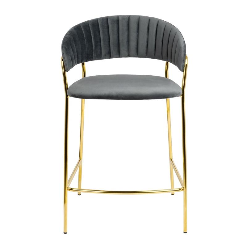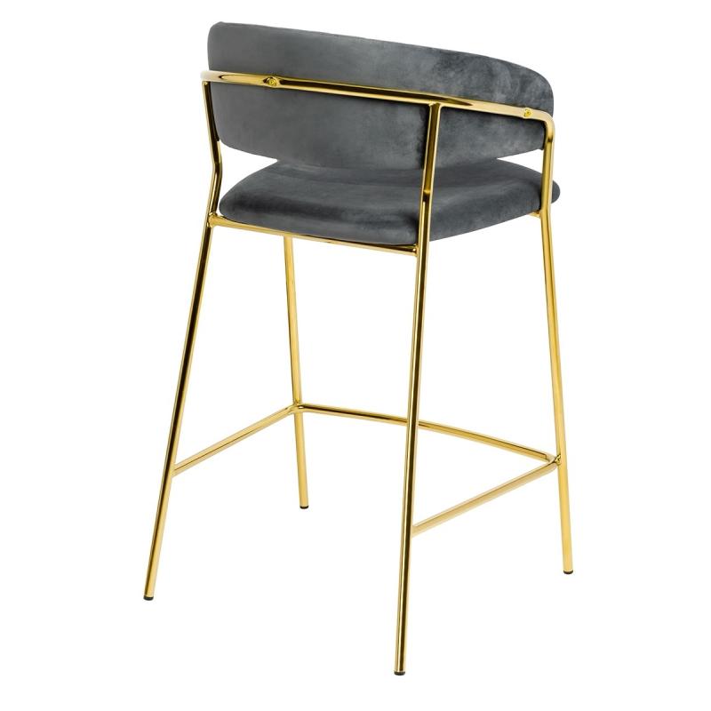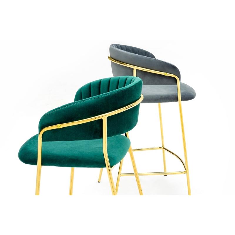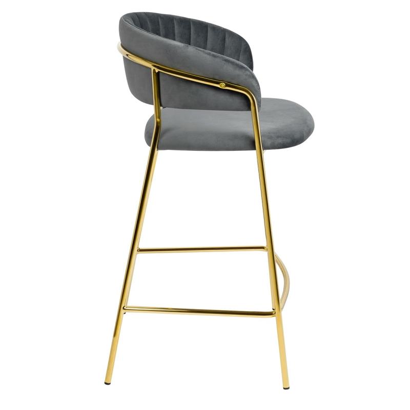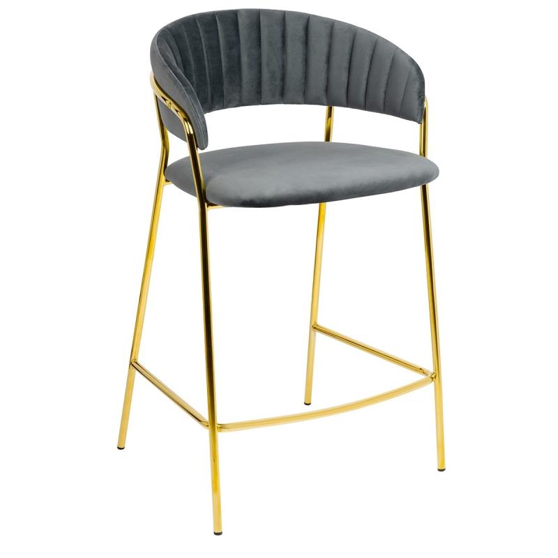 Krzesło barowe MARGO 65 ciemny szary - welur, podstawa złota