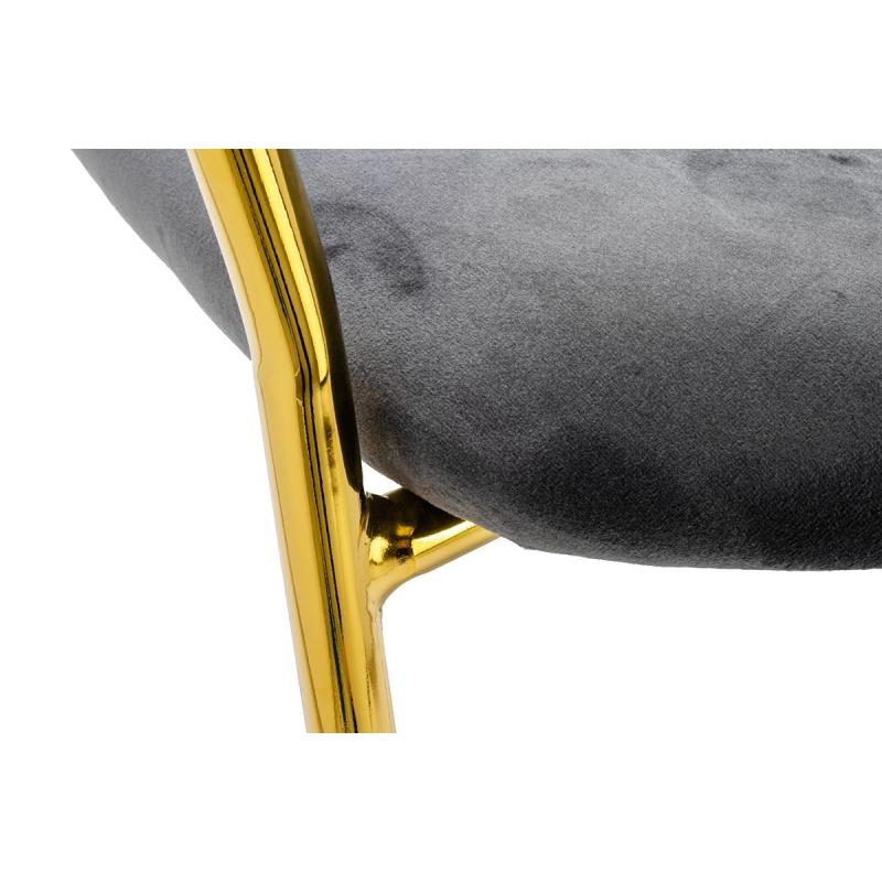 Hoker Margo w kolorze ciemny szary. Siedzisko i oparcie tapicerowane miękkim i przyjemnym w dotyku welurem. Mocna i stabilna konstrukcja wykonana została z metalu w kolorze złotym, błyszczącym. Doskonałe połączenie modnej tkaniny i złota. Pionowe przeszycia na oparciu dodają elegancji. Margo idealnie odnajdzie się we wnętrzach nowoczesnych i klasycznych.Szerokość siedziska: 47 cm Głębokość siedziska: 43 cm Rozstaw nóg (szerokość): 53,5 cm Rozstaw nóg (głębokość): 54 cm Waga netto: 6 kg Wymiary opakowania: 105 cm x 54 cm x 64,5 cm.