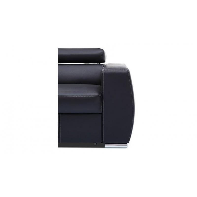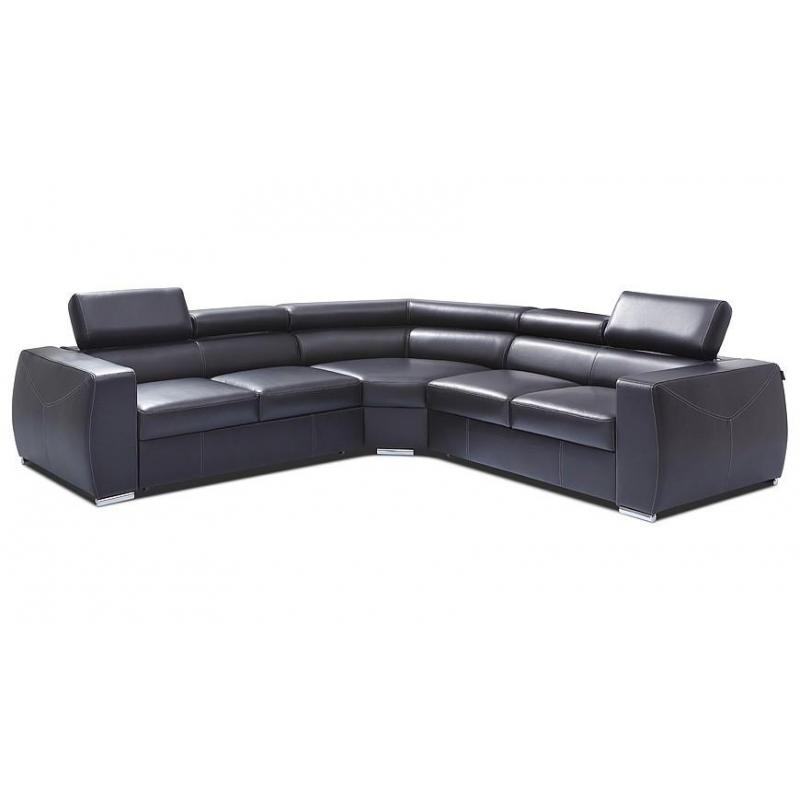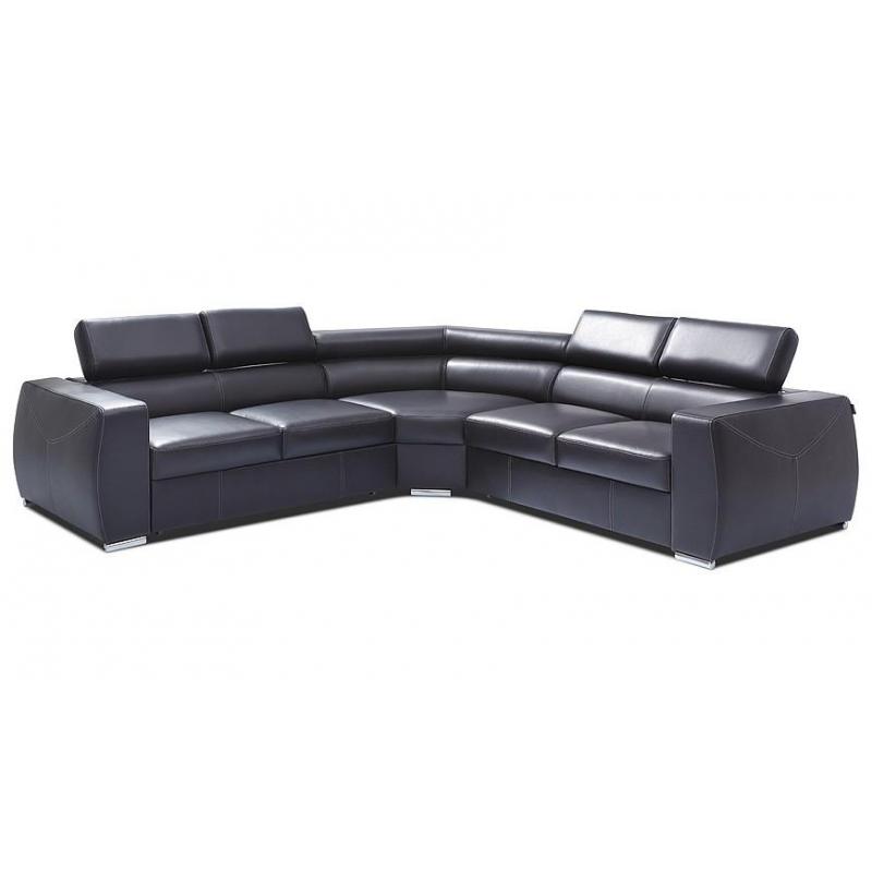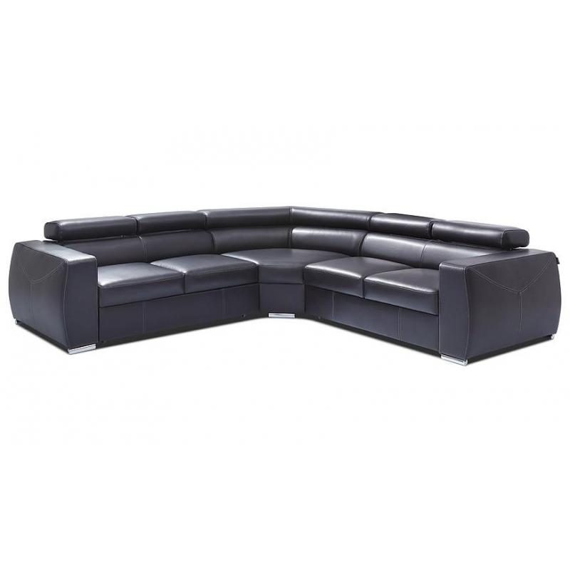 Narożnik VENTO to mebel, który daje maksimum wygody na skórzanym obszyciu. Dodatkowo jest niezwykle funkcjonalny. Ciemne kolory i gruba skóra naturalna idealnie pasują do nowoczesnej bryły narożnika. Regulowane w kilku stopniach zagłówki umożliwiają wygodne podparcie głowy nawet dla wyższych osób. Wygodne siedziska wykonane są z elastycznej pianki i sprężyn. Mnogość modułów pozwala zbudować indywidualny układ narożnika. Narożnik posiada okazjonalną funkcję spania oraz duży pojemnik na pościel. Nóżki z błyszczącego metalu podkreślają charakter narożnika i doskonale komponują się z kolorem skóry.