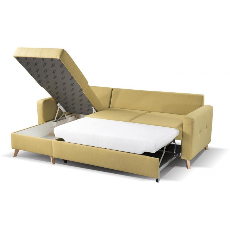 BOSCO - to narożnik niedużych rozmiarów, ale przyciąga uwagę swoją elegancją skandynawską. Pomimo, że jest małych rozmiarów to posiada wbudowany schowek na pościel oraz możliwość wygodnego spania. Jest to mebel nowoczesny, pasujący do wnętrz klasycznych jak i skandynawskich oraz nowoczesnych. Mebel ten cechuje bardzo wygodne siedzisko, które zostało wykonane ze sprężyn i pianki wysoko elastycznej. Ponadto narożnik stoi na drewnianych nogach, które eksponują jego piękno.