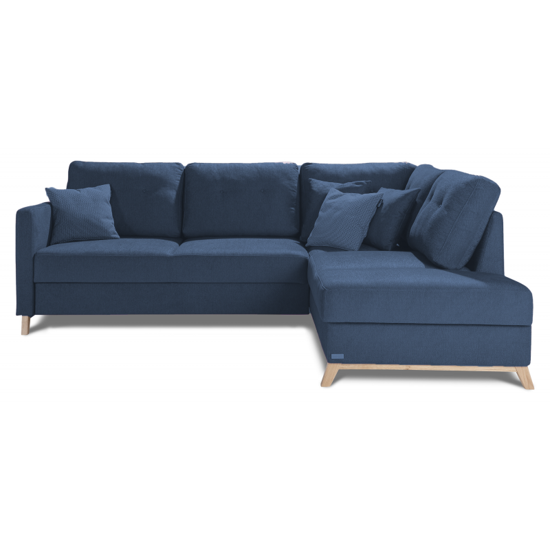 Elegancji całej bryły dodają wyjątkowe nogi wykonane z drzewa dębu. Narożnik YOKO posiada funkcję spania oraz schowek na poduszki i kołdrę.