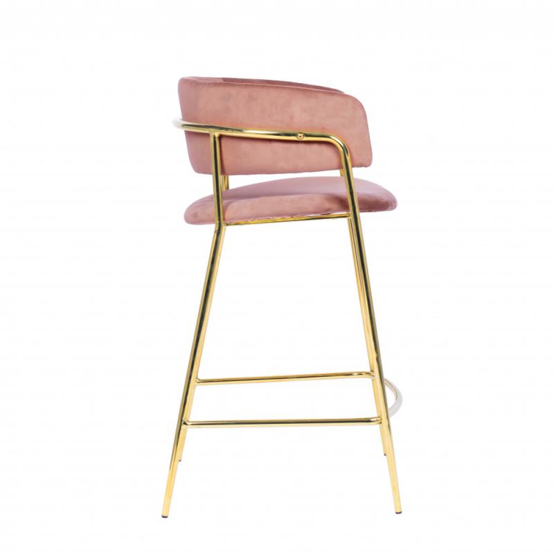 HOKER EVIA RÓŻOWY -nowoczesny wygląd oraz sama świeżość - to trendy w tym roku, które przykują wzrok każdego. Połączenie welurowej tkaniny i złotej podstawy to klasa, szyk i ocieplenie danego wnętrza. Hoker z siedziskiem z tkaniny welurowej zapewnia duży komfort, a także idealnie wpasowuje się we wnętrza luksusowe. Hoker Evia jest bardzo praktyczne dla zastosowania w wielu przestrzeniach, tj. : puby, jadalnie, salony i inne przestrzenie publiczne oraz prywatne.