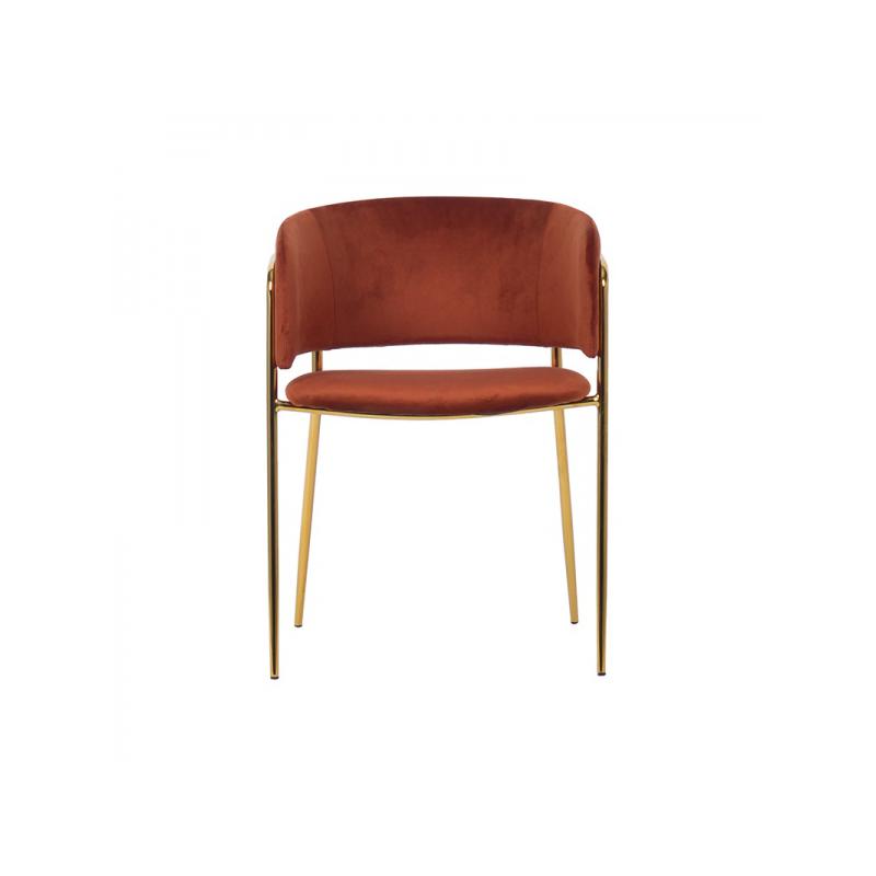 KRZESŁO DO SALONU EVIA RUDY -nowoczesny wygląd oraz sama świeżość - to trendy w tym roku, które przykują wzrok każdego. Krzesło z siedziskiem z tkaniny welurowej zapewnia duży komfort, a także idealnie wpasowuje się we wnętrza nowoczesne. Krzesło Evia jest bardzo praktyczne dla zastosowania w wielu przestrzeniach, tj. : puby, jadalnie, salony i inne przestrzenie publiczne oraz prywatne.
