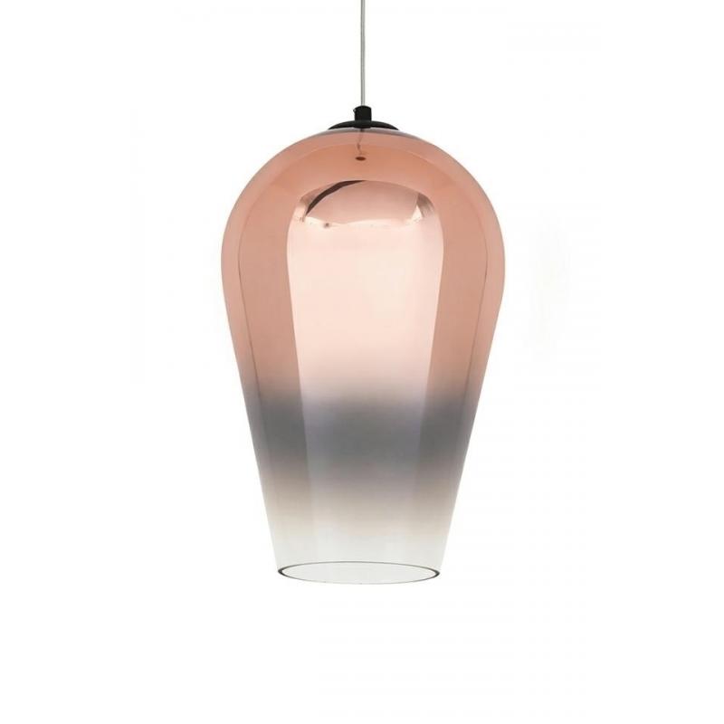 Lampa wisząca Venza 20. Venza kształtem przypomina odwróconą kroplę wody. Lampa wykonana jest ze szkła pokrytego miedzianym lakierem. Klosz zwęża się ku dołowi wraz z zanikącym kolorem. Dolna część klosza jest przezroczysta, tworząc delikatną świetlną obręcz. Dzięki czemu światło jest rozproszane i tworzy przyjemny efekt. Lampa doskonale sprawdzi się w salonie lub jadalni. Lampy z kolekcji Venza dostępne są w innych kolorach i rozmiarach.Światło: E27 max 40 W (brak w zestawie) Oprawa: wys. 4