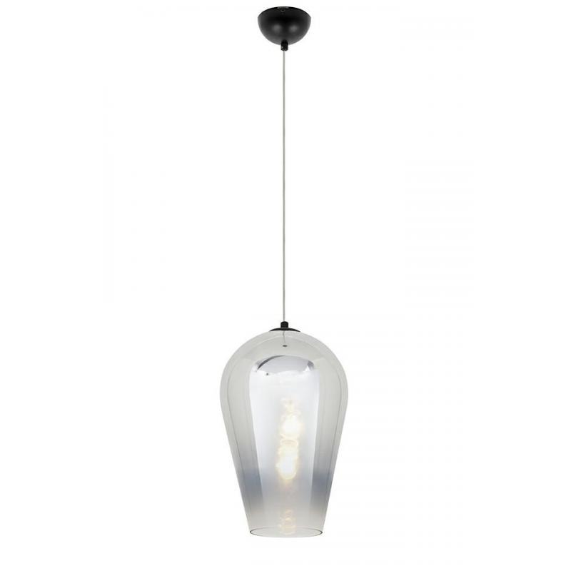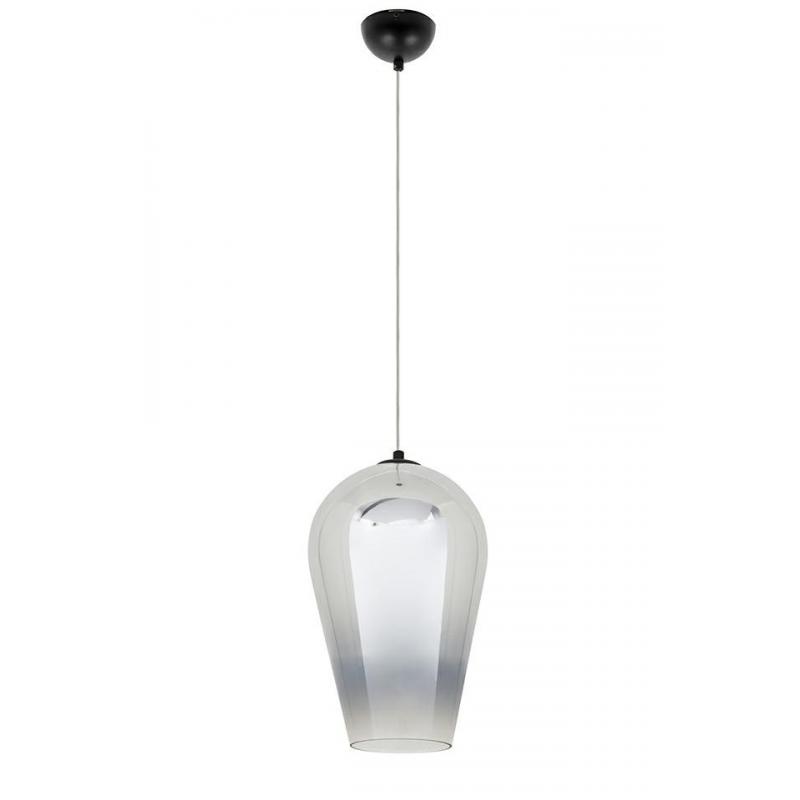 Lampa wisząca Venza 30. Venza kształtem przypomina odwróconą kroplę wody. Lampa wykonana jest ze szkła pokrytego chromowym lakierem. Klosz zwęża się ku dołowi wraz z zanikącym kolorem. Dolna część klosza jest przezroczysta, tworząc delikatną świetlną obręcz. Dzięki czemu światło jest rozproszane i tworzy przyjemny efekt. Lampa doskonale sprawdzi się w salonie lub jadalni. Lampy z kolekcji Venza dostępne są w innych kolorach i rozmiarach.Światło: E27 max 40 W (brak w zestawie) Oprawa: wys. 48