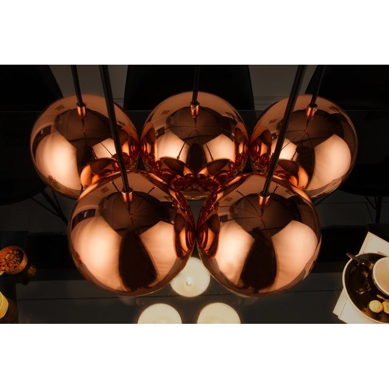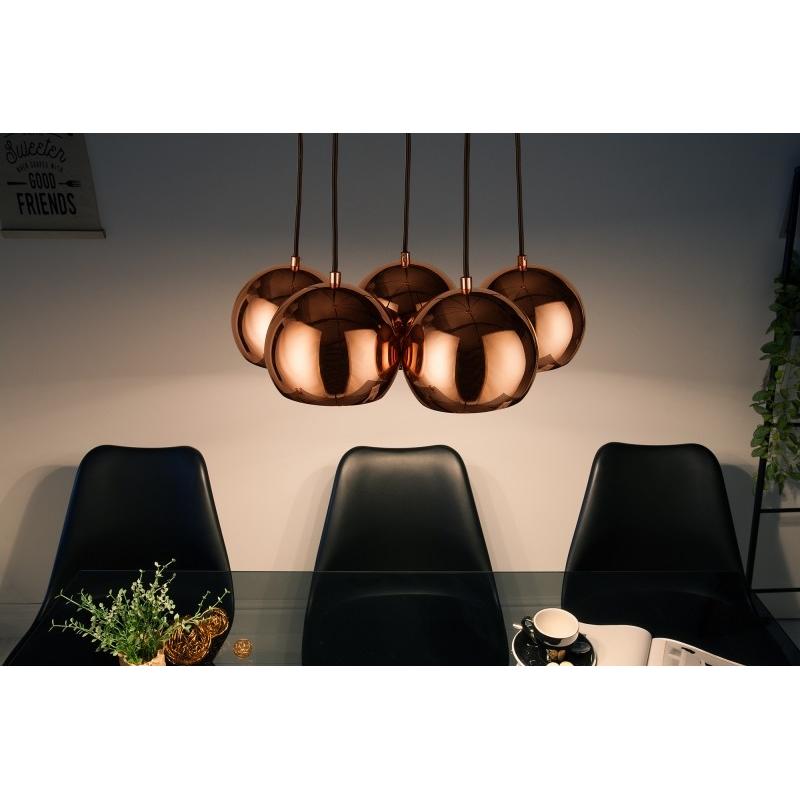INVICTA lampa wisząca PERLOTTE 5. Stworzona z myślą o świeżości w naszym mieszkaniu i niepowtarzalnym wyglądzie Składa się z pięciu oddzielnych lampek w kolorze różowo-złotym. Jest to obowiązkowa rzecz w mieszkaniach wszystkich osób, które Lubia nowoczesność.Wymiary lampy: Szerokość: 45 cm Wysokość: 14 cm Głębokość: 45 cmZawieszenie: Szerokość: 16 cm Wysokość: 4 cm Głębokość: 16 cm.Klosz: Szerokość: 14 cm Wysokość: 14 cm Głębokość: 14 cm.Ołów: 115 cmŹródło światła: 5 x E14 max 25W.