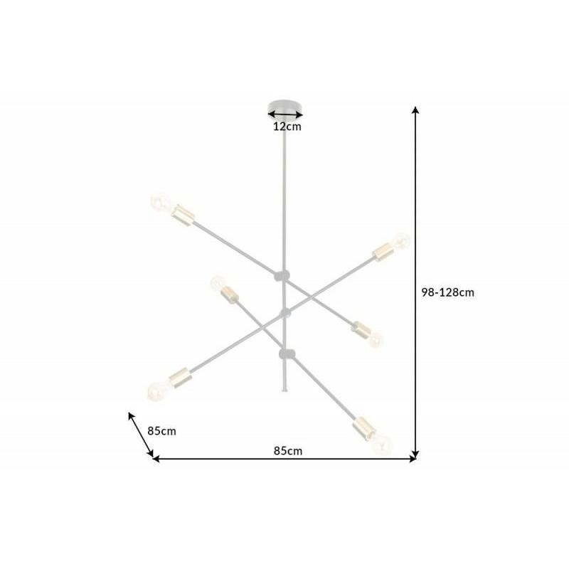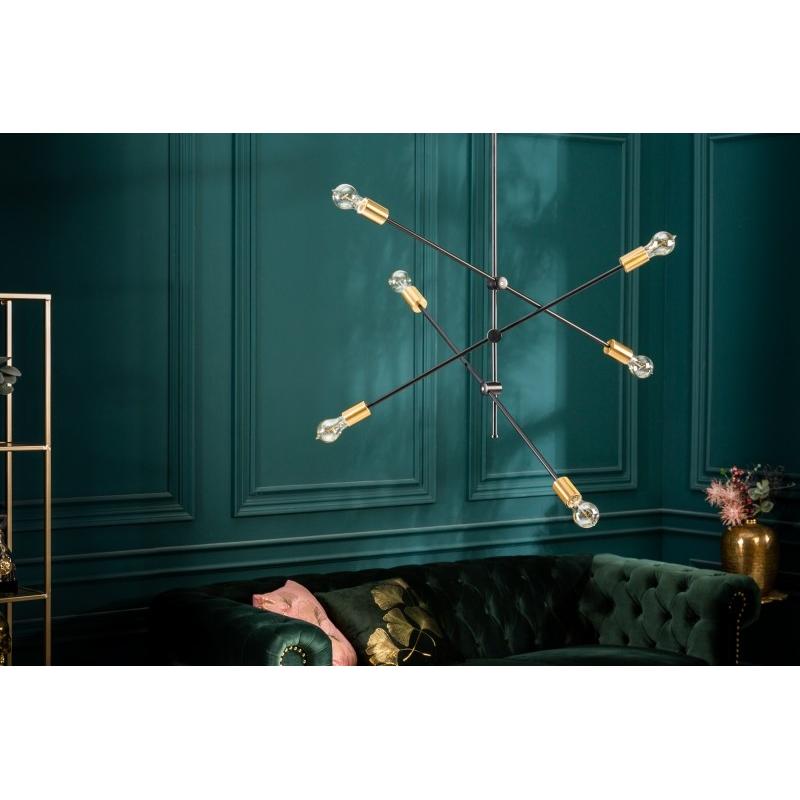 INVICTA lampa wisząca VARIATION. Lampa wykonana z wysokiej jakości metalu o niepowtarzalnym wyglądzie. Jej ramiona przymocowane do zawieszania są zmienne, możemy je dostosowywać do wybranych przez nas potrzeb. Jest ona w kolorach czerni i złota co doda jej charakteru i wyglądu retro.Szerokość: 85 cm Wysokość: 98 cm Głębokość: 85 cm.Gniazdo: 6x E27 maks. 40 watów.