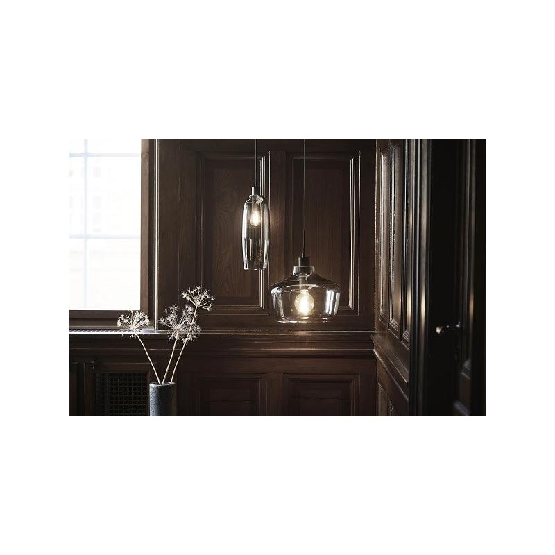 Lampa wisząca KYOTO od duńskiej marki FRANDSEN. Klosz został wykonany z galwanizowanego szkła, dzięki czemu doskonale odbija światło i tworzy lustrzany efekt. Szkło jest przydymione z delikatnym czarnym odcieniem. Wewnątrz umieszczone jest źródło światła. Lampa zawieszona jest na czarnym przewodzie o długości 300 cm.Długość kabla: 300 cm Średnica podsufitki: 12,5 cm Wysokość podsufitki: 2,5 cm Źródło światła (brak w zestawie): 1x E27 MAX 25 W Waga netto 1 szt.: 2,6 kg Produkt do samodzielnego