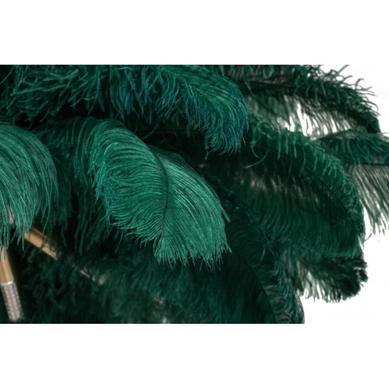 Lampa podłogowa TIFFANY 175 zielona mosiądz / naturalne pióra