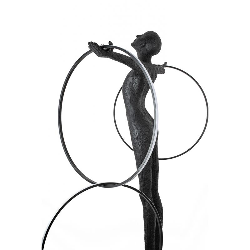 Lampa podłogowa HUMAN CIRCULO. Wykonana z włókna szklanego, stali oraz aluminium. Czarny kolor oraz nietypowy motyw człowieka w okręgu tworzy nowoczesną dekorację niemal każdej przestrzeni. Obręcze które są o siebie zaplecione, skrywają ledowe źródło światła, oświetlając postać, zwraca na nią szczególną uwagę. Z powodzeniem wzbudzi zainteresowanie nie tylko miłośników designu.Światło: LED 140 W / 11200 lm / 3000 K Podstawa: szer. 80 cm / wys. 5 cm / gł. 58 cm Okrąg: szer. 2,3 cm / gr. 1,5 cm /