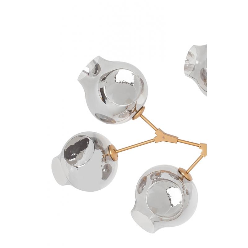 Lampa wisząca SPLIT 9. Efektowna i wyrazista kompozycja inspirowana gałęziami drzew. Poszczególne klosze rozmieszczone są nierównomiernie i pozornie przypadkowo, tworząc jednocześnie spójną, przemyślaną całość. Lampa została wykonana z metalu w kolorze złotym oraz szkła, co zapewnia jej trwałość i nieskazitelny wygląd. Split stanowi mocny punkt dekoracyjny mieszkania, restauracji czy hotelu. Świetnie sprawdzi się w stylu klasycznym, glamour, czy nawet minimalistycznym, nadając mu jednocześnie pr