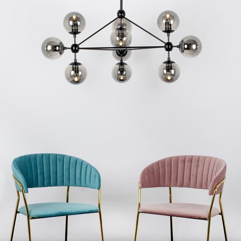 Lampa Planetario 10. Konstrukcja lampy wykonana została z metalu w kolorze czarnym matowym. Całość dopełnia 10 okrągłych kloszy. Klosze wykonane są z dymionego szkła. Dzięki temu światło jest ciepłe i przyjemne. Lampa doskonale sprawdzi się w salonie lub jadalni. Model dostępny jest w innych rozmiarach oraz kolorze złotym.Światło: 10 x E27 max 40 W (brak w zestawie) Oprawa: wys. 45 cm Klosz: śr. 15 cm Zawiesie składa się z 2 elementów: 1 x 60 cm / 1 x 35 cm Montaż: instalacja sufitowa Waga net