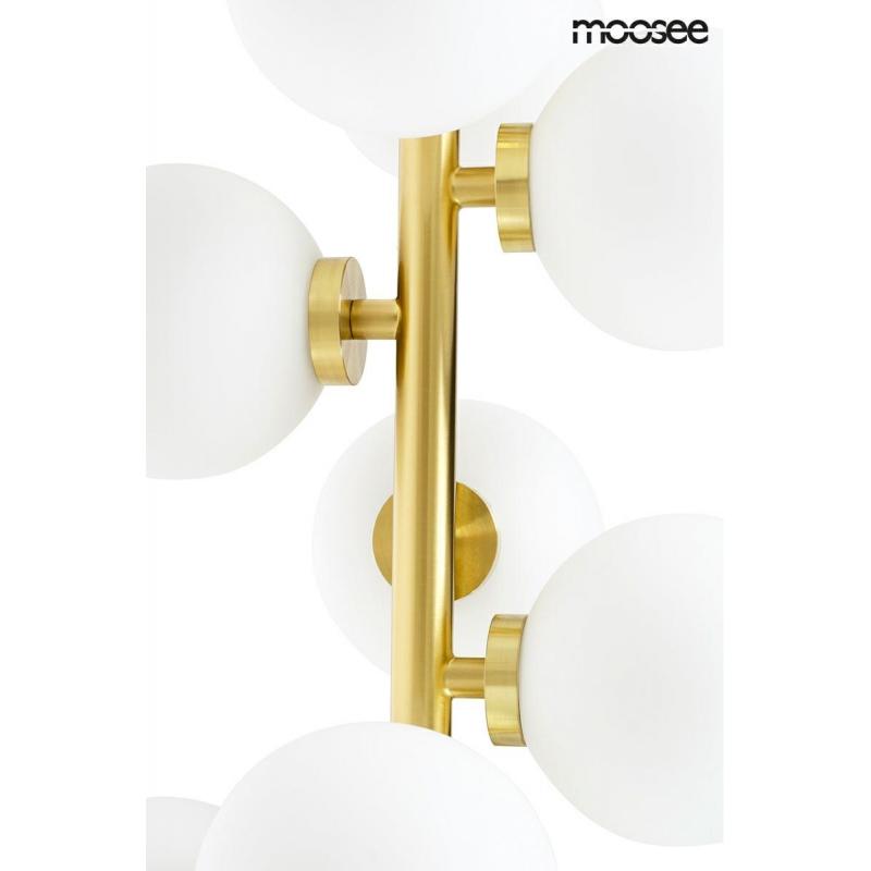 Lampa podłogowa COSMO FLOOR GOLD od marki MOOSEE. W odróżnieniu od pozostałych lamp z kolekcji Cosmo. Model Cosmo Floor wykonany zostały z metalu w złotym kolorze i kulistych kloszy. Trzynaście kloszy wykonanych z mlecznego szkła umieszczono na pionowej konstrukcji. Cała kompozycja została ustawiona na złotej, okrągłej podstawie. Kolekcję Cosmo cechuje elegancja i doskonałe wykonanie. Lampa z powodzeniem rozświetli wnętrze salonu, gabinetu lub hotelowego lobby.Światło: LED 13 x G4 max. 2,5 W (