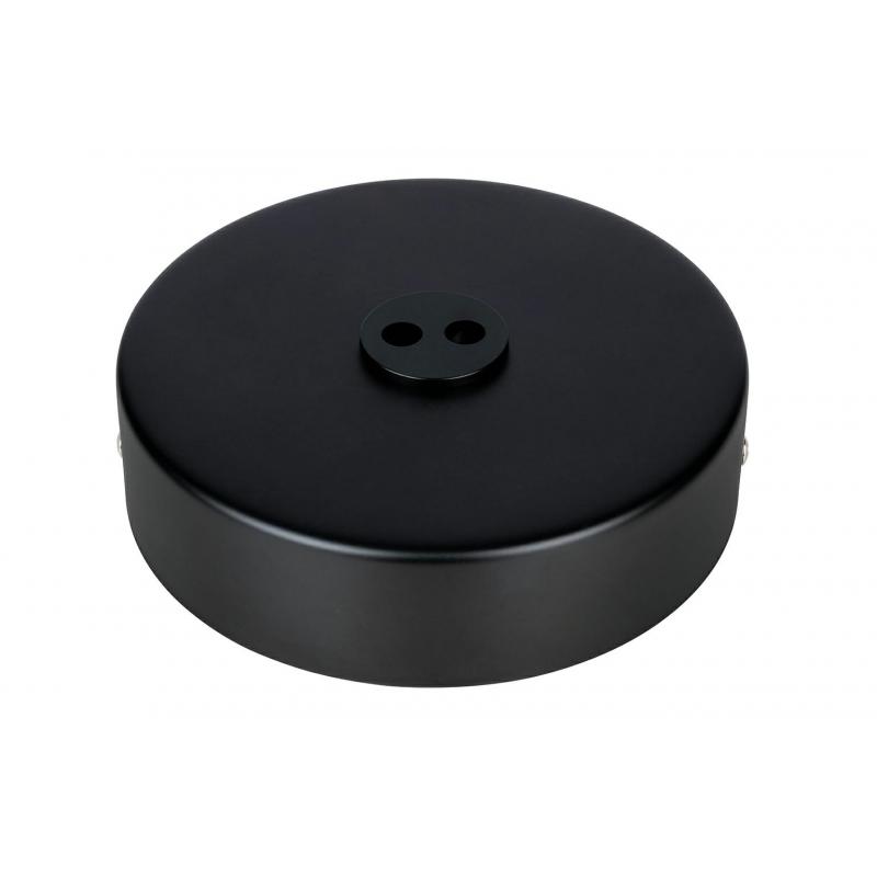 Podsufitka, rozeta do lampy. Wykonana z metalu w kolorze czarnym. Podsufitka wyposażona w wykręcaną redukcję otworu na przewód. Redukcja dla przewodu do 9,5 mm. Standardowa średnica otworu 32 mm.Średnica podsufitki: 15 cm Sposób wysyłki: Paczka Maksymalna ilość szt. w opakowaniu: 2