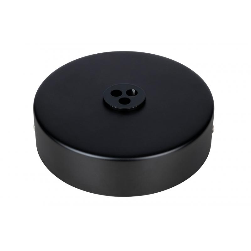 Podsufitka, rozeta do lampy. Wykonana z metalu w kolorze czarnym. Podsufitka wyposażona w wykręcaną redukcję otworu na przewód. Redukcja dla przewodu do 9,5 mm. Standardowa średnica otworu 32 mm.Średnica podsufitki: 15 cm Sposób wysyłki: Paczka Maksymalna ilość szt. w opakowaniu: 2