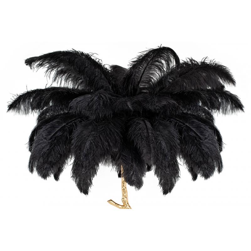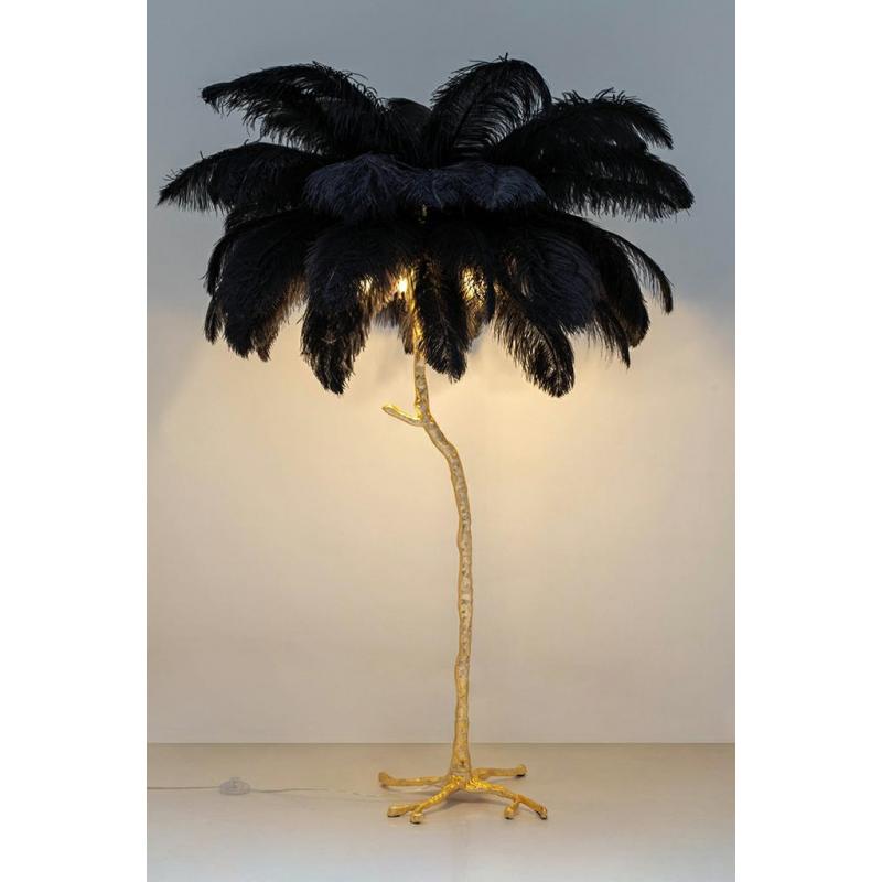 Lampa podłogowa TIFFANY 175 czarna mosiądz / naturalne pióra