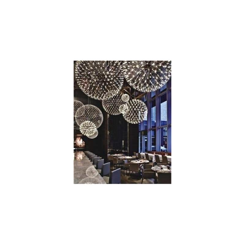 MOOSEE lampa wisząca STELLAR 90 srebrna. Lampa zbudowana jest z dwóch stalowych kul, umieszczonych jedna w drugiej. Konstrukcja połączona jest ledowymi źródłami światła, co daje gwieździsty efekt, oferując ciepłe i eleganckie oświetlenie. Stellar najlepiej prezentuje się zawieszony kaskadowo z innymi rozmiarami dostępnymi w ofercie.Światło: LED 20 W / 1600 lm / 3000 K Oprawa: wys. 350 cm / szer. 90 cm / gł. 90 cm Klosz: szer. 90 cm Mocowanie: śr. 14 cm / wys. 10 cm Długość kabla: 260 cm Monta