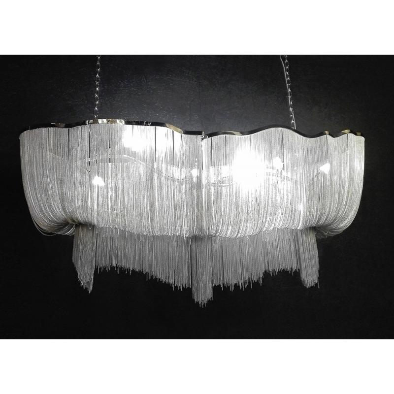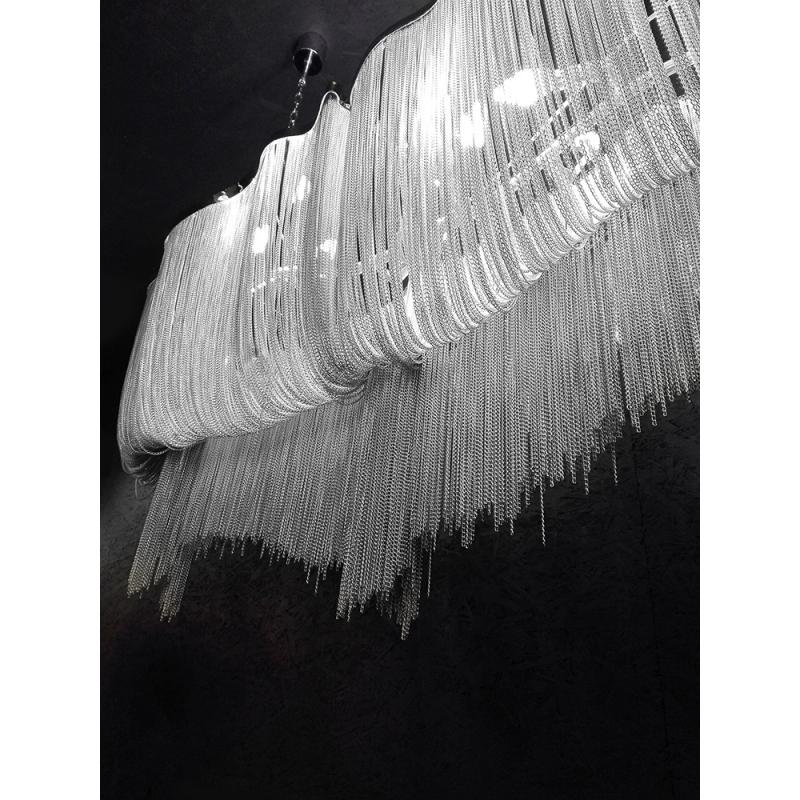 Atlanta Long to niezwykła lampa wisząca, inspirowana projektem Terzani Atlantis posiada nieregularne kształty, niczym fale oceanu. Została wykonana z aluminium i stalowych, drobnych łańcuchów, dzięki którym światło jest przyjemnie rozproszone, a sama lampa wygląda ekskluzywnie i elegancko. W środku lampy znajduje się aż 10 mocowań na żarówki, co daje całkiem intensywne i równomierne oświetlenie. Lampa Atlanta pasuje zarówno do salonów, czy sypialni, jak również do wszelkich stylowych przestrzeni