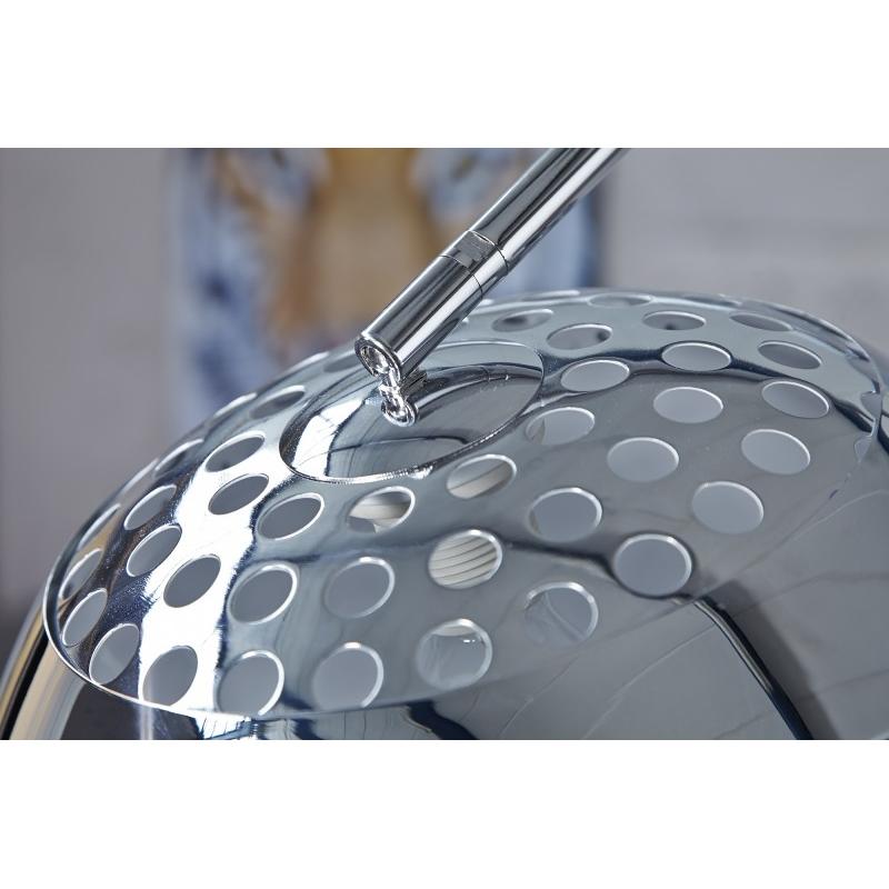 Klasyczna lampa podłogowa o regulowanym zasięgu i marmurowej podstawie. Klosz wykonany z chromowanej stali, natomiast rama z metalu o wysokiej jakości. Lampa posiada regulowaną wysokość oraz szerokość, która możemy dopasować do naszych indywidualnych potrzeb, świetnie się sprawdzi do wieczornego czytania książek lub oglądania telewizji. Jej nowoczesny wygląd możemy dopasować do każdego rodzaju mebli.Wymiary lampy: Szerokość: 150 cm - 160 cm Wysokość: 170 cm - 210 cm Klosz: 32 cm x 32 cm. Średn