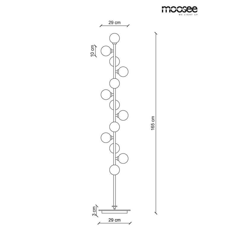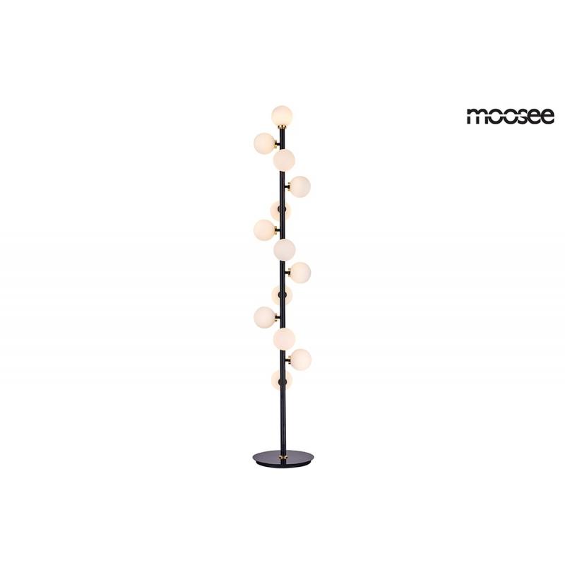 Lampa podłogowa COSMO FLOOR BLACK od marki MOOSEE. Kolekcję Cosmo cechuje wykonanie z połączenia metalu w czarnym, satynowym kolorze, złotych dekorów i szklanych kulistych kloszy. Trzynaście kloszy wykonanych z mlecznego szkła umieszczono na pionowej konstrukcji. Cała kompozycja została ustawiona na okrągłej podstawie, zapewniającej stabilność. Kolekcję Cosmo cechuje elegancja i doskonałe wykonanie. Lampa z powodzeniem rozświetli wnętrze salonu, gabinetu lub hotelowego lobby.Źródło światła: LE