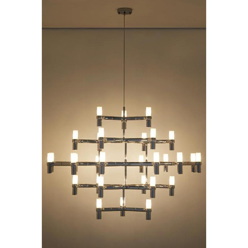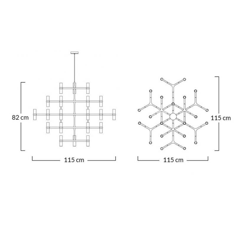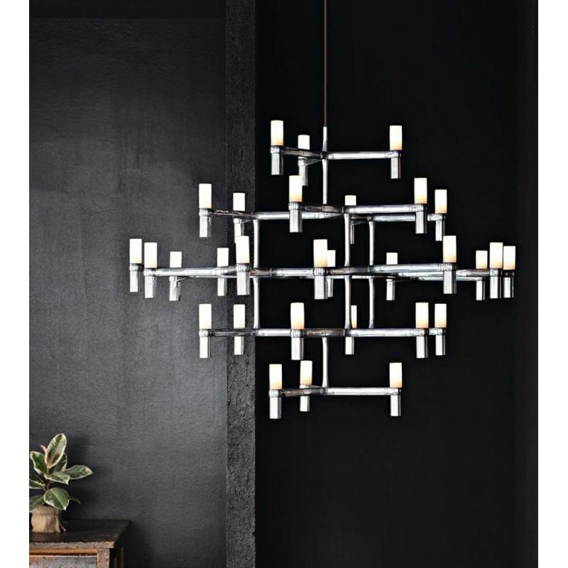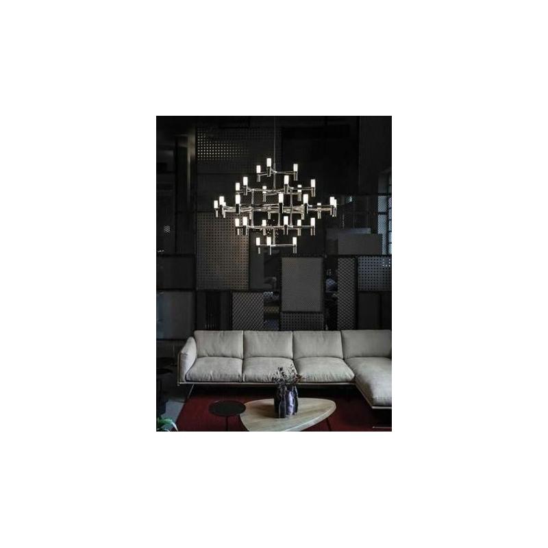 Lampa Atomic Grande została wykonana z chromowanego metalu. Satynowe klosze sprawiają że, lampa oferuje ciepłe i rozproszone światło. Lampa jest większą wersja lampy Atomic wyposażonej w 12 kloszy.Źródło światła: 30 x G9 MAX 10 W Długość przewodu: max 200 cm Waga netto 1 szt.: 29 kg Waga opakowania: 33 kg Maksymalna ilość szt. w opakowaniu: 1 Wymiary opakowania: 79 cm x 69 cm x 96 cm Sposób wysyłki: Paleta Produkt do samodzielnego montażu: Tak