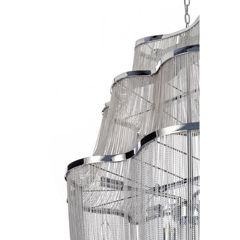 Atlanta 2 to niezwykła lampa wisząca, zainspirowana projektem Terzani Atlantis posiada nieregularne kształty, niczym fale oceanu. Została wykonana z polerowanego aluminium i stalowych, drobnych łańcuchów, dzięki którym światło jest przyjemnie rozproszone, a sama lampa wygląda ekskluzywnie i elegancko. W środku lampy znajduje się aż 10 mocowań na żarówki, co daje intensywne i równomierne oświetlenie. Lampa Atlanta 2 pasuje zarówno do salonów, czy sypialni, jak również do wszelkich stylowych przes