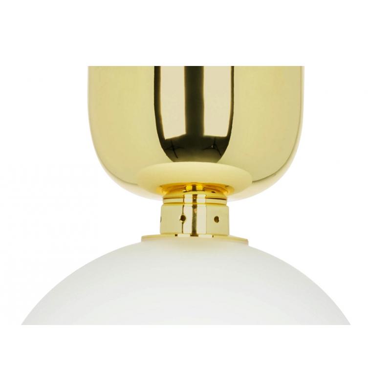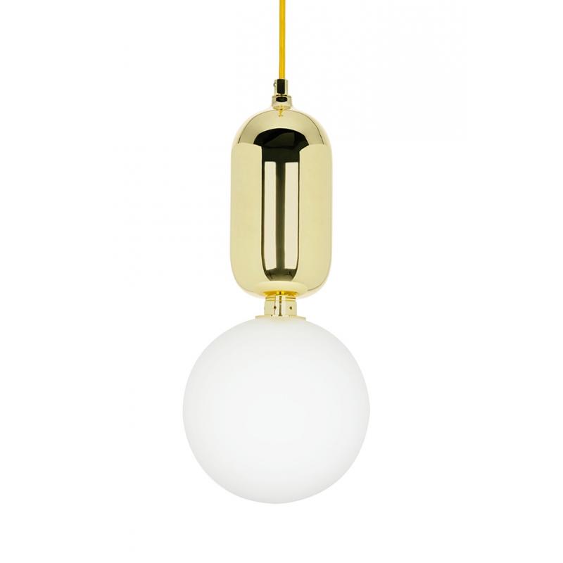 Lampa wiszącą BOY S złota. Korpus wykonany został z połączenia szkła i metalu w czarnym, błyszczącym kolorze. Lampa wyposażona w źródło światła LED, ukryte pod szklanym, matowym kloszem. Prosta forma i staranne wykonanie sprawiają że, lampy z kolekcji BOY doskonale odnajdą się we wnętrzach mieszkalnych i restauracyjno-hotelowych.Średnica złotego elementu: 10 cm Wysokość klosza: 41 cm Średnica podsufitki: 10 cm Wysokość podsufitki: 8 cm Długość przewodu: 125 cm Źródło światła:1xG9 LED MAX 25W W