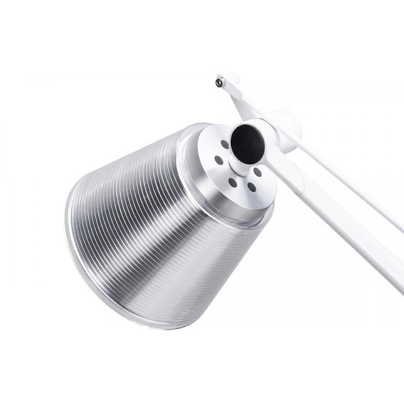 Rayon Arm Wall to ledowy kinkiet z akrylowym kloszem. Elegancki kinkiet z regulowanym ramieniem i kloszem. Ramię i mocowanie ścienne wykonane zostały z aluminium w białym, matowym kolorze. Klosz zrobiony jest ze szczotkowanego aluminium w srebrnym kolorze z akrylową dekoracyjną osłonką. Lampa jest wyposażona w moduł LED, dzięki czemu jest nowoczesna i oferuje odpowiednie światło do salonu, kuchni lub sypialni. Lampy z kolekcji Rayon Arm, dostępne są w innych wariantach.Średnica klosza: 19,5 c