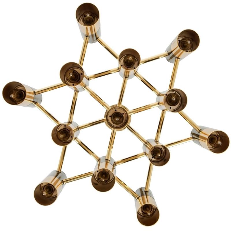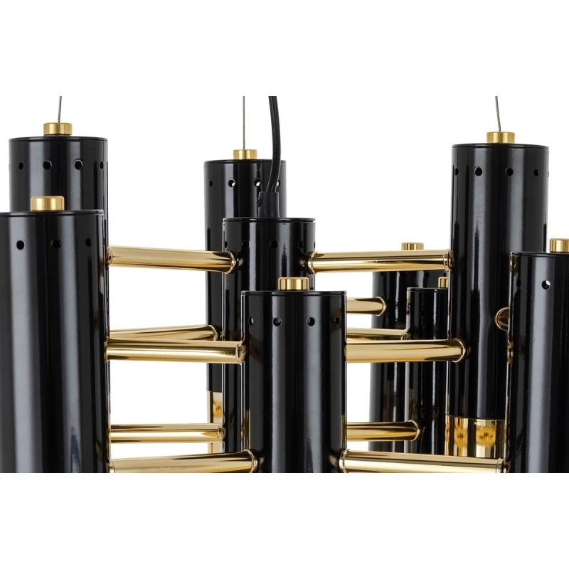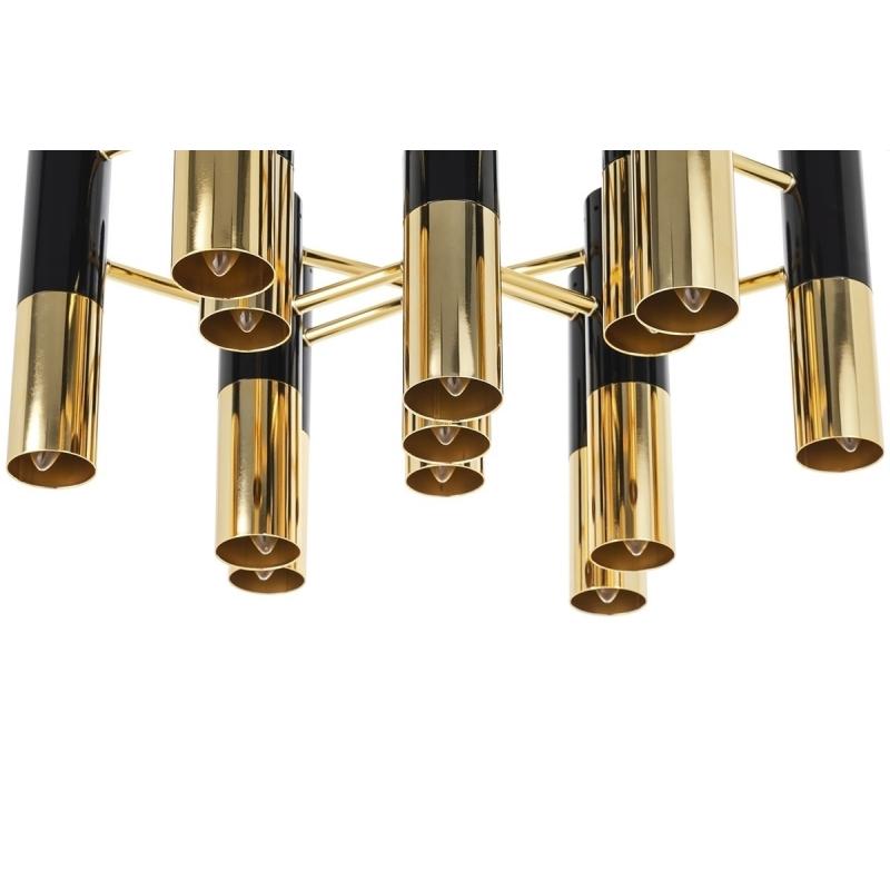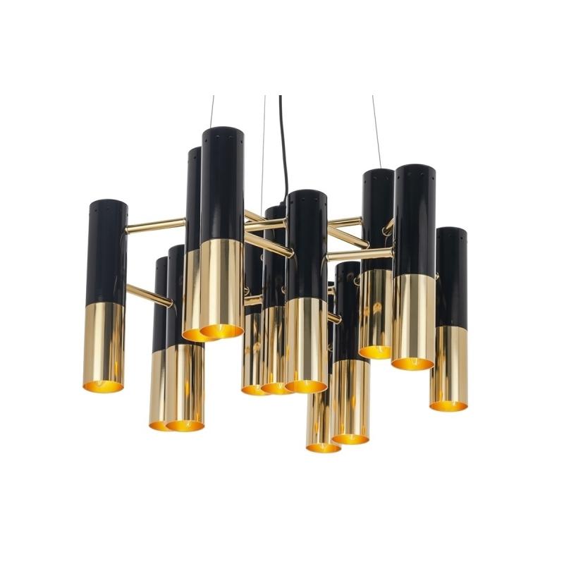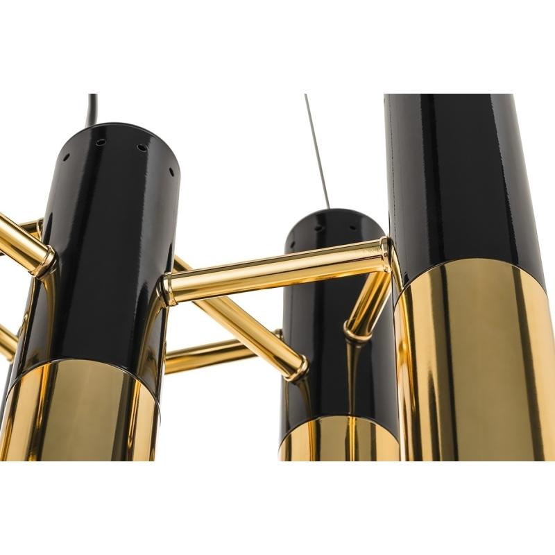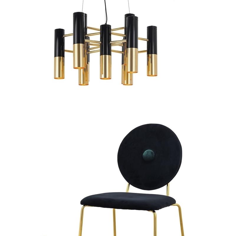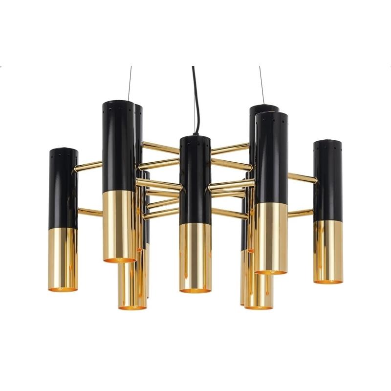 LUNETTE to elegancka lampa wisząca. Lampę tworzy 13 punktów świetlnych wykonanych z metalu i wykończonych złotym kolorem. Punkty zostały starannie połączone konstrukcją w kolorze złotym. Całość tworzy elegancką i designerską kompozycję. Lunette będzie doskonałym oświetleniem do wnętrz nowoczesnych oraz urządzonych w stylu klasycznym.Światło: 13 x E14 max. 30 W (brak w zestawie) Oprawa: wys. 37 cm / szer. 60 cm / gł. 60 cm Montaż: instalacja sufitowa Waga netto: 12 kg Wymiary paczki: 67 cm /