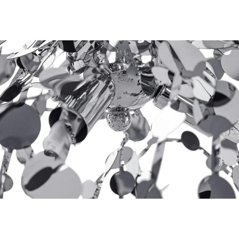 Lampa wisząca Monete chromowana. Wyjątkowo ciekawa lampa która przykuwa uwagę i pobudza kreatywność. Konstrukcja lampy wykonana została z chromowanego metalu. Klosz przypominający swoim wyglądem, garści monet podrzuconych do góry. Został zawieszony na transparentnym przewodzie i podsufitce w kolorze lampy. Lampy z kolekcji Monete będą świetnym dodatkiem nad stołem w jadalni lub ekstrawaganckim elementem salonu.Światło: 3 x G9 max 30 W (brak w zestawie) Oprawa: wys. 200 cm / szer. 40 cm / gł. 4