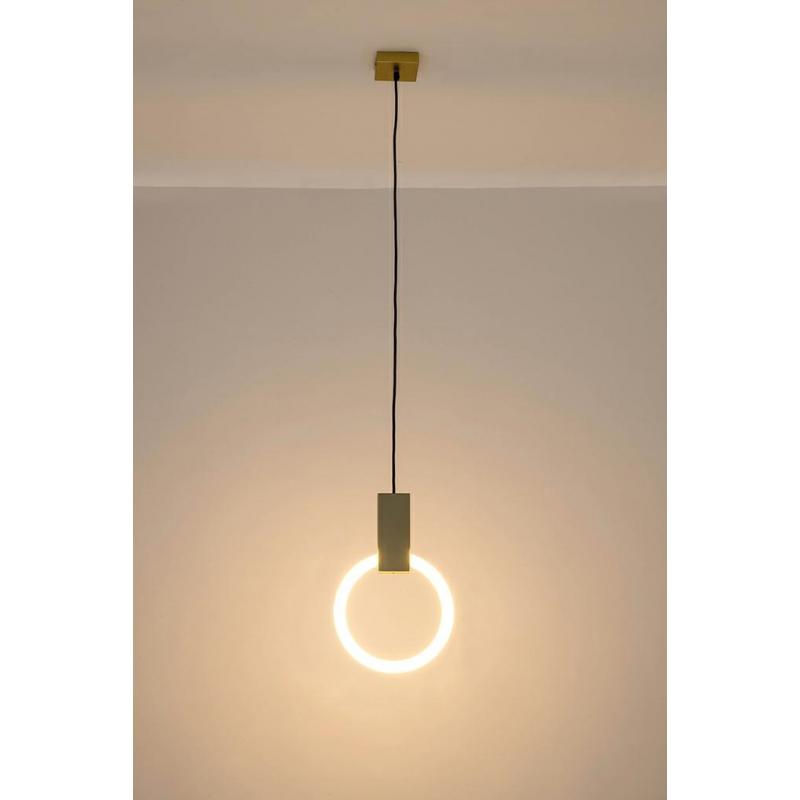 Lampa HOPP to idealna propozycja dla zwolenników ciekawych i nowoczesnych aranżacji. Okrągła wymienna świetlówka połączona puszką w kolorze złotym z czarnym kablem w oplocie, wizualnie przypomina designerką kołatkę. Lampy kolekcji Hopp doskonale prezentują się pojedynczo, jak również zawieszone kaskadowo w różnych rozmiarach obok siebie. Oprócz praktycznego zastosowania, swoim nietuzinkowym wyglądem ozdrobią każdą przesterzeń.Światło: świetlówka LED T9 max. 22 W (w zestawie) Oprawa: wys. 31