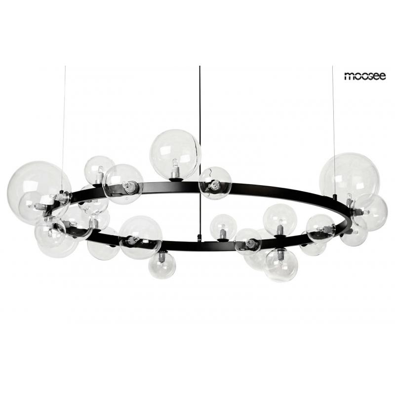 MOOSEE lampa wisząca ALURE 120 czarna. Propozycja dla osób, które chcą wprowadzić do swojego wnętrza niekonwencjonalne elementy. Charakterystyczne rozlokowanie punktów świetlnych powoduje rozchodzenie się światła w różnych kierunkach. W skład lampy wchodzi 15 punktów świetlnych umieszczonych na czarnej obręczy. Lampa świetnie sprawdzi się zarówno we wnętrzach mieszkalnych, jak i biurach oraz hotelach.Źródło światła: 15 x G9 max. 40 W (brak w zestawie) Oprawa: wys. 250 cm / szer. 120 cm / gł. 3