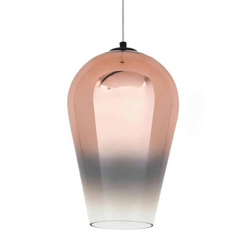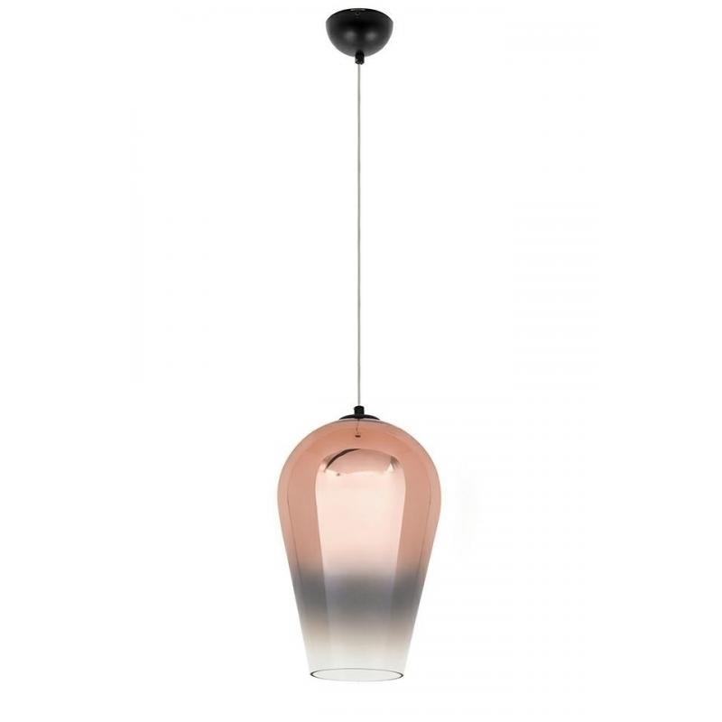 Lampa wisząca Venza 30. Venza kształtem przypomina odwróconą kroplę wody. Lampa wykonana jest ze szkła pokrytego miedzianym lakierem. Klosz zwęża się ku dołowi wraz z zanikącym kolorem. Dolna część klosza jest przezroczysta, tworząc delikatną świetlną obręcz. Dzięki czemu światło jest rozproszane i tworzy przyjemny efekt. Lampa doskonale sprawdzi się w salonie lub jadalni. Lampy z kolekcji Venza dostępne są w innych kolorach i rozmiarach.Światło: E27 max 40 W (brak w zestawie) Oprawa: wys. 4