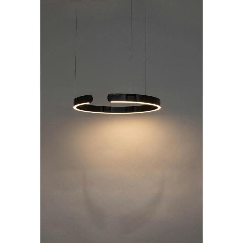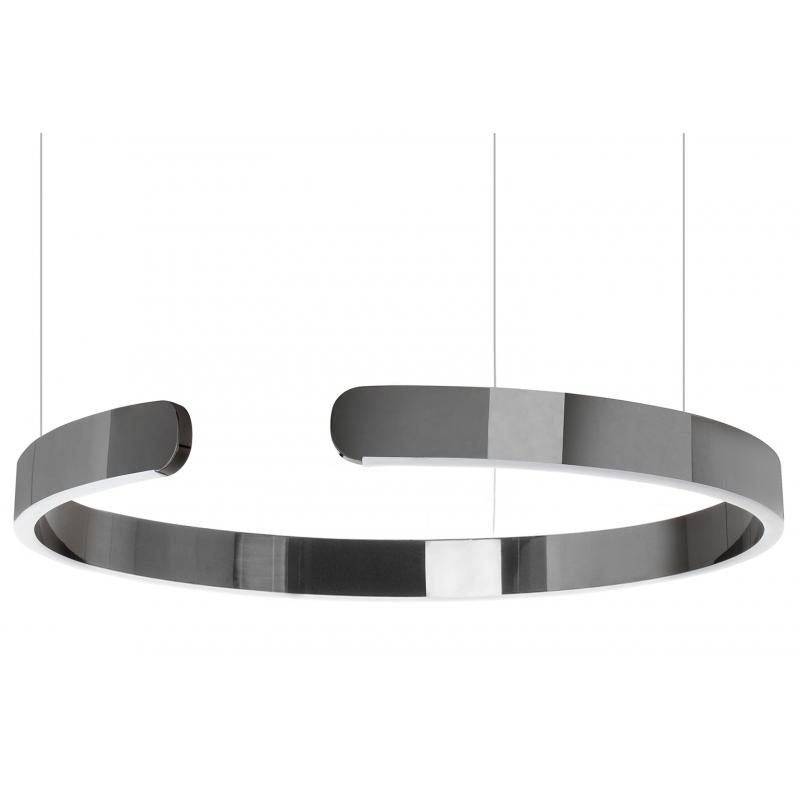 Lampa wisząca VISTA. Oświetlenie wykonane ze stali polerowanej na wysoki połysk w kształcie niepełnego okręgu. Pod akrylową osłoną skrywane jest wbudowane źródło światła. Designerska oprawa w nowoczesnym stylu dobrze prezentuje się w pojedynkę, lecz pełny efekt tworzy zawieszona kaskadowo. Vista tworzy niepowtarzalny nastrój w milu domowym, jak również w przestrzeni publicznej. Lampa dostępna w różnych rozmiarach i wariantach kolorystycznych.Światło: LED 36 W / 2880 lm / 3000 K Oprawa: wys. 2