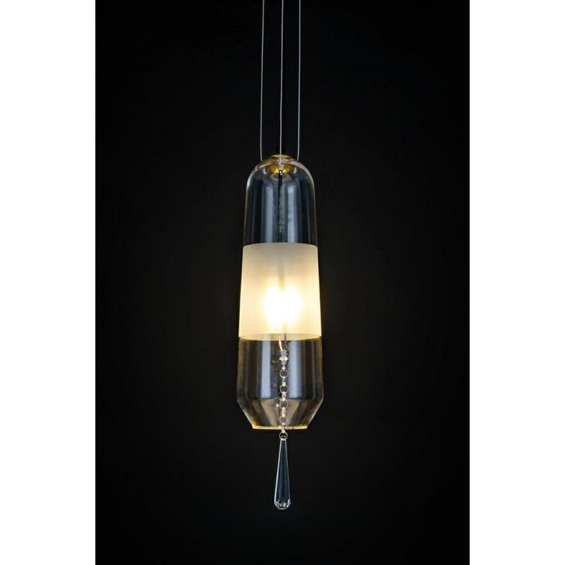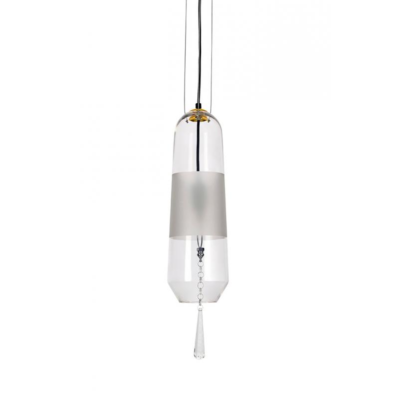 Newel to lampa wisząca o cylindrycznym kształcie. Głównym elementem lampy jest szklany klosz. Transparentny klosz z matowym pasem, zapewnia odpowiednie oświetlenie pomieszczenia. Klosz posiada średnicę 15 cm i 45 cm wysokości. Newel doskonale sprawdzi się we wnętrzach klasycznych i nowoczesnych.Światło: E14 max. 40 W (brak w zestawie) Oprawa: wys. 226 cm / szer. 12 cm / gł. 12 cm Klosz: wys. 38 cm Mocowanie: śr. 10 cm / wys. 3 cm Długość kabla: 180 cm Montaż: instalacja sufitowa Waga netto: 4
