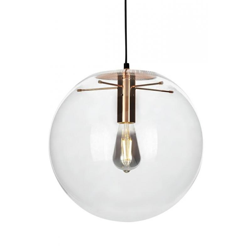Lampa wisząca Sandra 40 to niesamowita kompozycja inspirowana projektem Selene. Okrągły klosz został całkowicie wykonany z transparentnego szkła. Wewnątrz klosza na stelażu z metalu w kolorze miedzianym, zawieszone jest źródło światła. Lampa przeznaczona do przestrzeni mieszkalnych oraz restauracyjno - hotelowych łączących w sobie elegancję i styl. W kloszu mogą pojawić się pęcherzyki powietrza, które są naturalnym efektem powstałym podczas ręcznej obróbki szkła.Światło: E27 max. 40 W (brak w