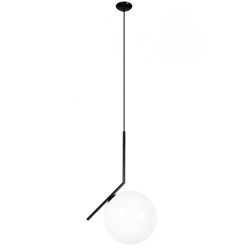 Lampa wisząca Halm 30 w kolorze czarnym z matowym wykończeniem. Wyjątkowa propozycja dla osób ceniących minimalistyczne piękno, ale zarazem poszukujących nowych oryginalnych rozwiązań. Szklany klosz ma kształt kuli, wyglądającej na lewitującą w powietrzu, która jest przymocowana do asymetrycznego stelażu wykonanego z mosiądzu. Dodatkowo efekt lekkości potęguje jasny kolor klosza dający przytulne światło, które ociepli np. surowe wnętrza w stylu industrialnym, loftowym, czy nowoczesnym - w przest