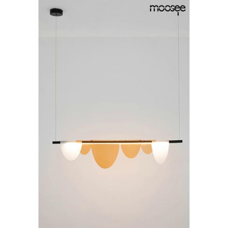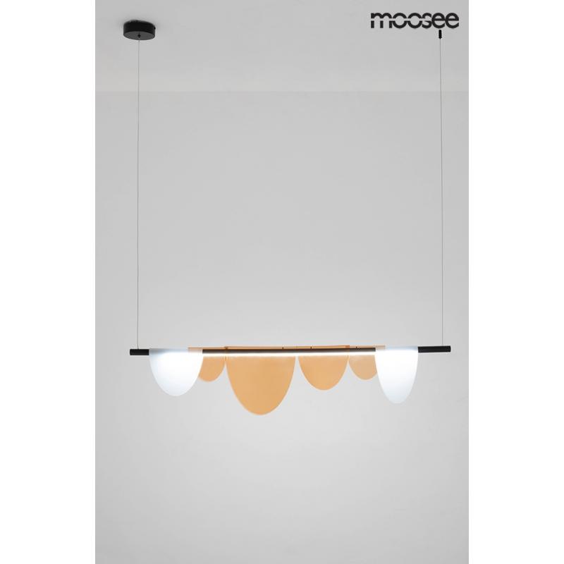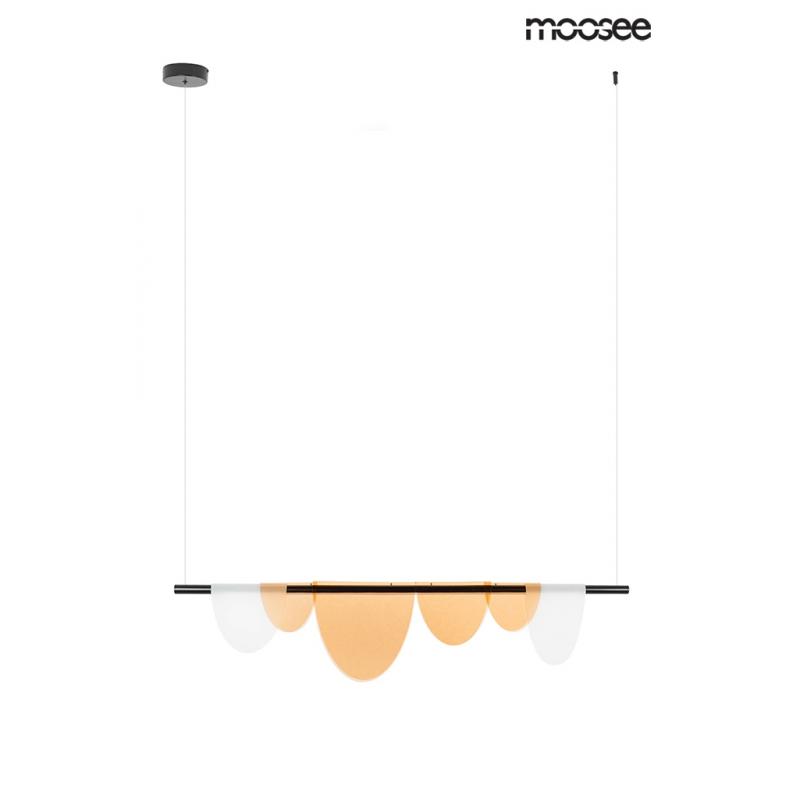 MOOSEE lampa wisząca LAVA. Niezwykła oprawa z efektownym designem. Połączenie stalowej konstrukcji skrywającej źródło światła z akrylowymi kloszami, które w przyjemny sposób rozpraszają światło. Lava posiada moduł ledowy, za pomocą którego można zmienić barwę światła z zimnej na ciepłą. Dzięki tej funkcji staje się niezwykle praktycznym oświetleniem, a zarazem dekoracją przestrzeni.Światło: LED SMD 33 W / 2640 lm / 3000 K - 5000 K (2 tryby pracy) Oprawa: wys. 220,5 cm / szer. 120 cm / gł. 4,5