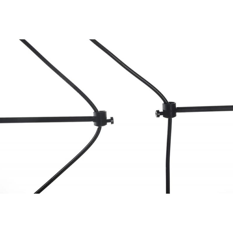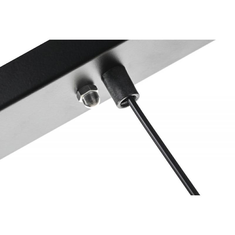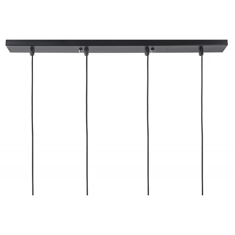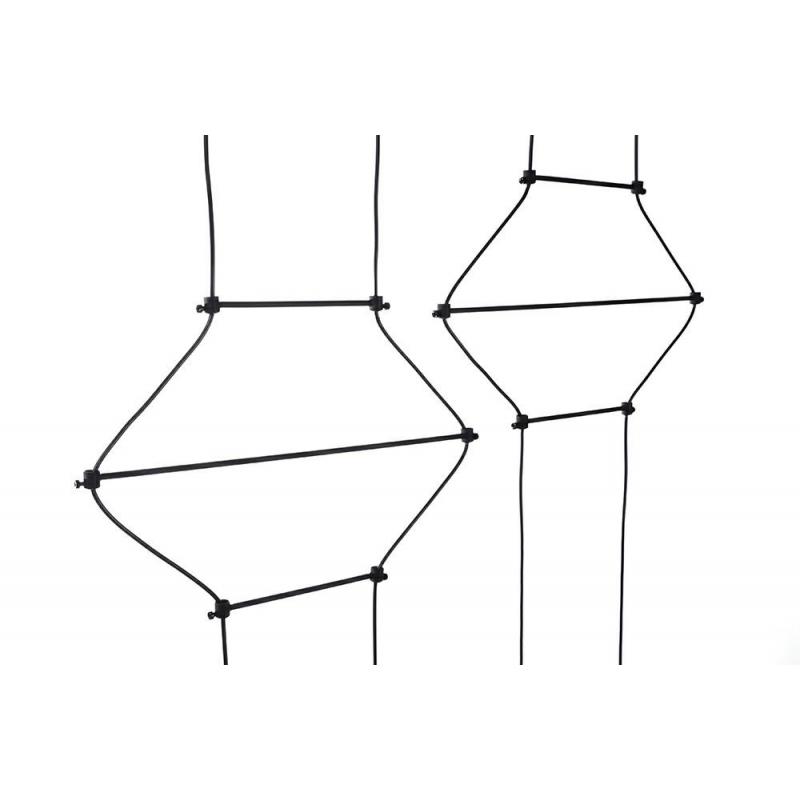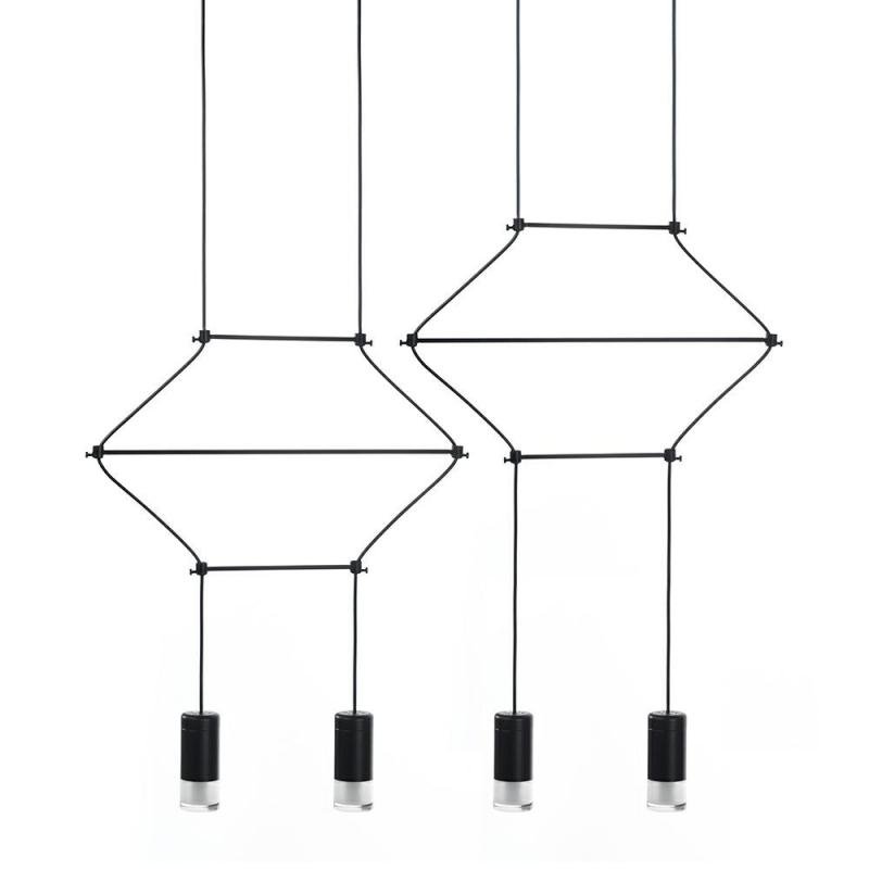 Lampa wisząca Flusso Line 4. Minimalistyczna i zaskakująca konstrukcja. Lampa wykonana została z czterech jednakowych przewodów. Kształt lampie nadają metalowe elementy, które wraz z przewodami tworzą geometryczną konstrukcję w czarnym kolorze. Elementy pozwalają na połączenie dwóch przewodów, tworząc dwie oddzielne konstrukcje. Pozwala to na dowolną aranżację lampy. Przewody zakończone są czterema satynowymi kloszami. Wewnątrz kloszy umieszczono Ledowe źródła światła. Całość tworzy wyjątkowo ci