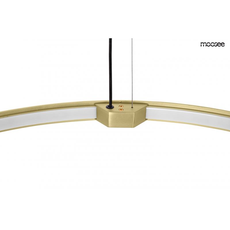 MOOSEE lampa wisząca CIRCLE 50 złota. Wykonana została ze stali nierdzewnej w kolorze złotym. Okrągły klosz pod akrylową osłoną skrywa ledowe źródło światła. Całość została zawieszona na podsufitce w kolorze złotym, czarnym przewodzie i stalowych linkach.Światło: LED 24 W / 1920 lm / 3000 K Oprawa: wys. 197 cm / szer. 50 cm Klosz: wys. 3 cm / śr. 50 cm / gł. 1 cm Mocowanie: wys. 4 cm / śr. 13 cm Element mocowania linek: wys. 4 cm / śr. 1 cm Długość linki: 190 cm Montaż: instalacja sufitowa Wag