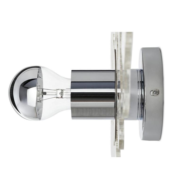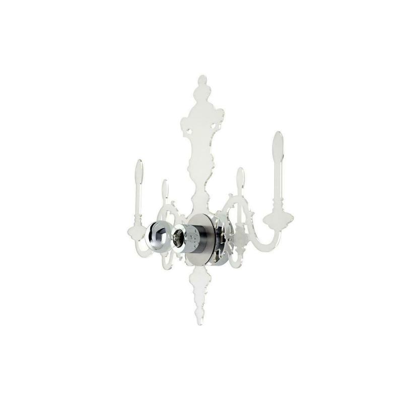Lampa ścienna ICE 3D. Oprawa wykonana została z bezbarwnego akrylu. Rozeta, wykonana z chromowanego metalu. Kinkiet swoim kształtem imituje starodawną lampę ścienną. Oświetlona konstrukcja, rzuca cień na ścianę, tworząc designerska kompozycję.Źródło światła: E27 1 x 40 W (brak w zestawie) Wysokość: 48 cm Szerokość: 54 cm Głębokość: 17 cm Waga netto: 1,9 kg Wymiary opakowania: 55 cm x 54 cm x 11 cm.