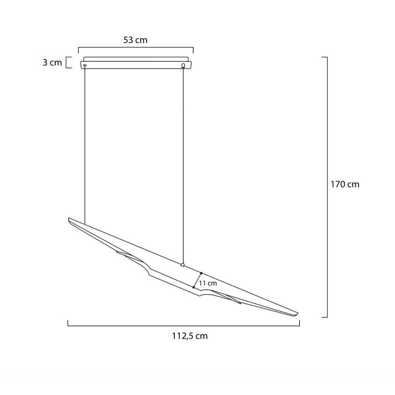 Lampa wisząca Fenix. Klosz wykonano z formowanego metalu w czarnym, matowym kolorze. Wewnętrzna strona klosza jest w kolorze złotym, dzięki czemu doskonale rozprasza i ociepla światło. Całość jest zawieszona w charakterystyczny sposób na przewodzie i stalowej lince. Fenix z powodzeniem może zawisnąć nad stołem w jadalni, barem lub recepcją w hotelu.Światło: 2 x G9 max. 40 W (brak w zestawie) Oprawa: wys. 170 cm / szer. 112,5 cm / gł. 10,5 cm Klosz: wys.11 cm Mocowanie: szer. 53 cm / gł. 7 cm /