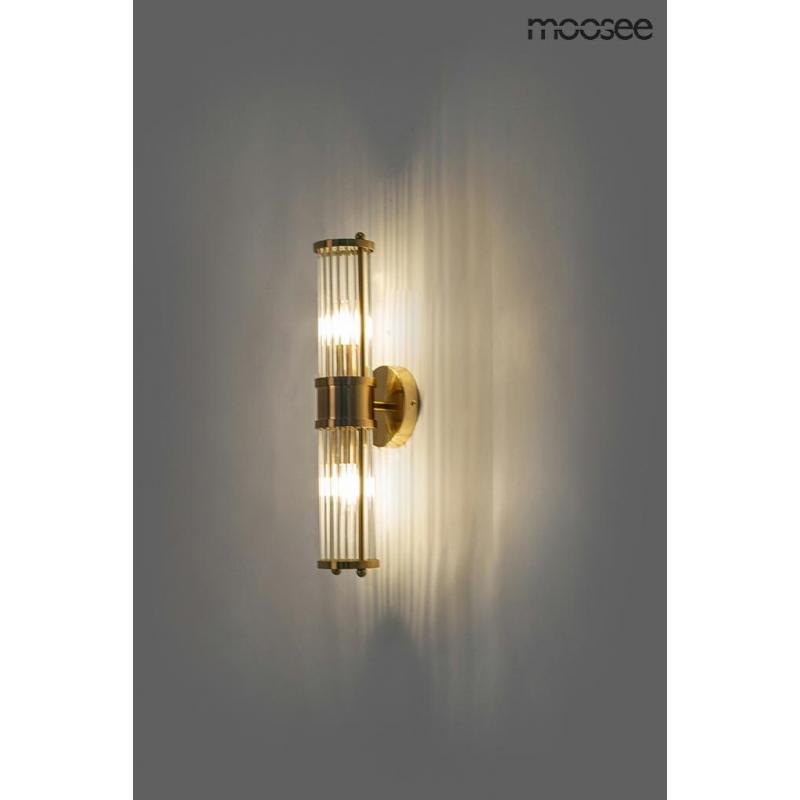 Lampa ścienna PILAR TWIN złota. Elegancka osłona kloszy wykonana została ze stali w kolorze złotym. Wewnątrz oprawy zamocowane są delikatne kryształowe klosze, w których źródło światła skierowane zostało zarówno w górę, jak i w dół, co tworzy wspaniały efekt świetlny.Światło: 2 x E14 max 40 W (brak w zestawie) Oprawa: wys. 49 cm / szer. 12 cm / gł.14 cm Mocowanie: śr. 2,5 cm / wys. 12 cm Montaż: instalacja sufitowa Waga netto: 2 kg Wymiar opakowania: 38 cm / 22 cm / 19 cm.