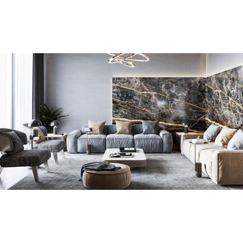 ALBERTO doskonale prezentuje się w miękkich i miłych w dotyku welurach oraz w skórze naturalnej. Cechą charakterystyczną i wyróżnikiem kolekcji są naturalne marszczenia i zluźnienia obicia oraz ozdobny "francuski" szew.