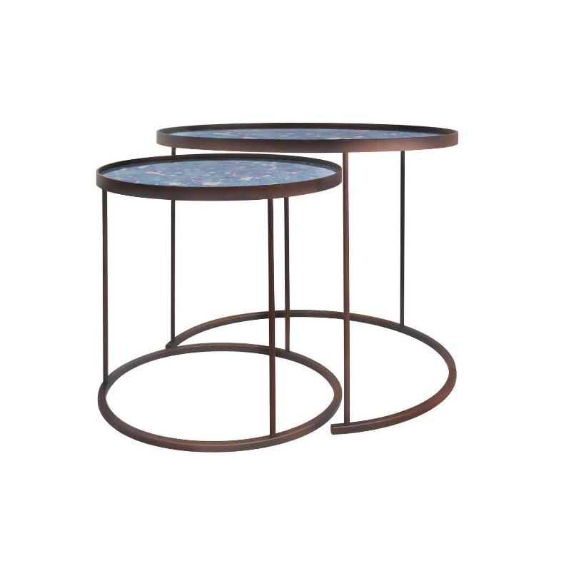 Stolik Kawowy Gala I- tym razem w nieco innej odsłonie, lustro postarzane, stal lakierowana proszkowo, kolor rdzawy brąz