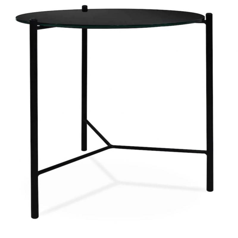 STOLIK KAWOWY SOUL 50- tym razem w nieco innej odsłonie, czarne szkło, stal lakierowana proszkowo, korpus czarny.
